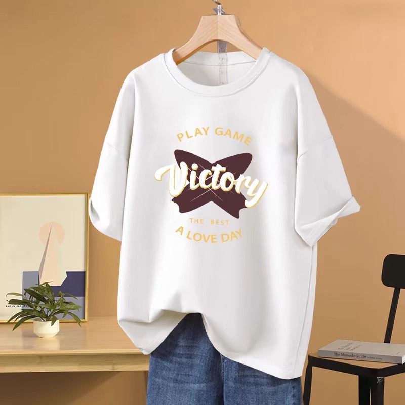 아메리칸 스타일 레트로 100 코튼 반팔 티셔츠 여자 2025 년 여름 오버 사이즈 루즈 플러스 사이즈 올 매치 탑인