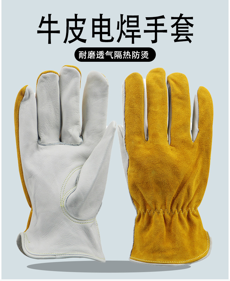 전기 용접 장갑 소 가죽 내구성 내마모성 통기성 단열 안티 scald 용접기 기계 용접 스파크 보호 노동 보호 장갑