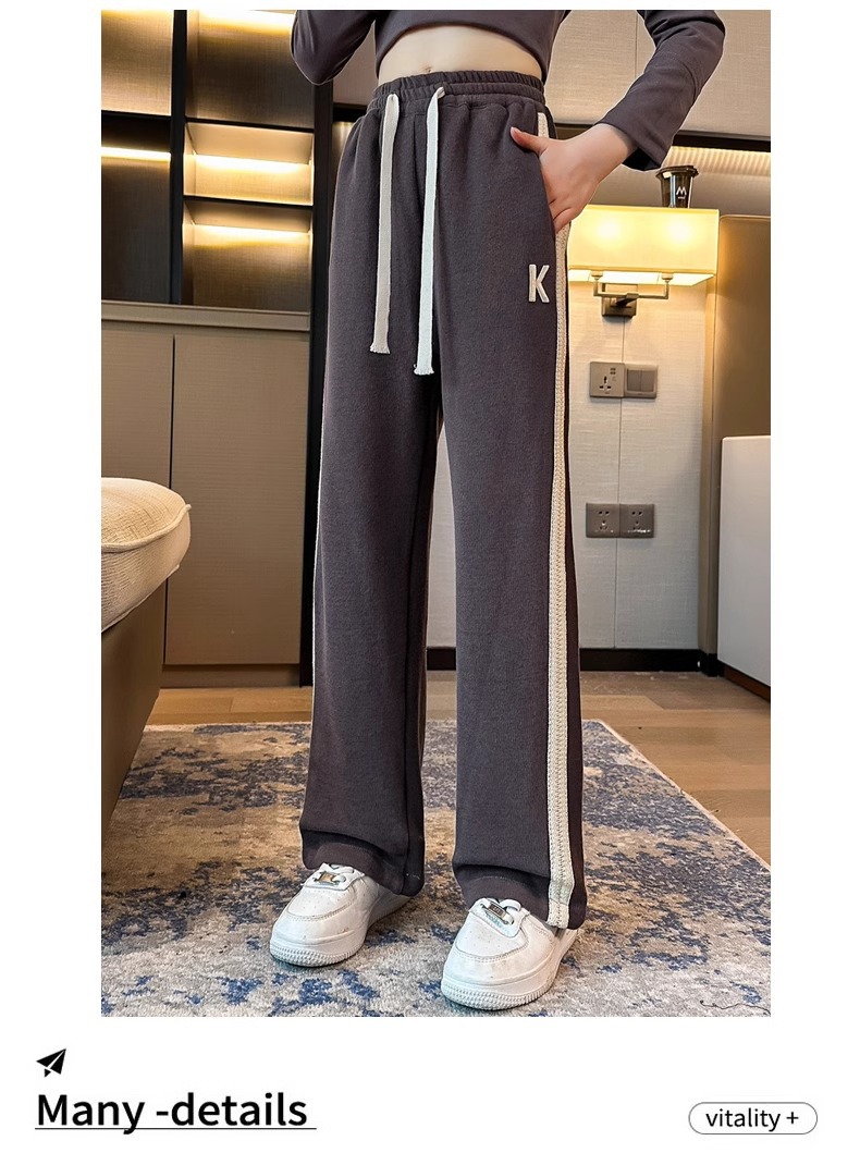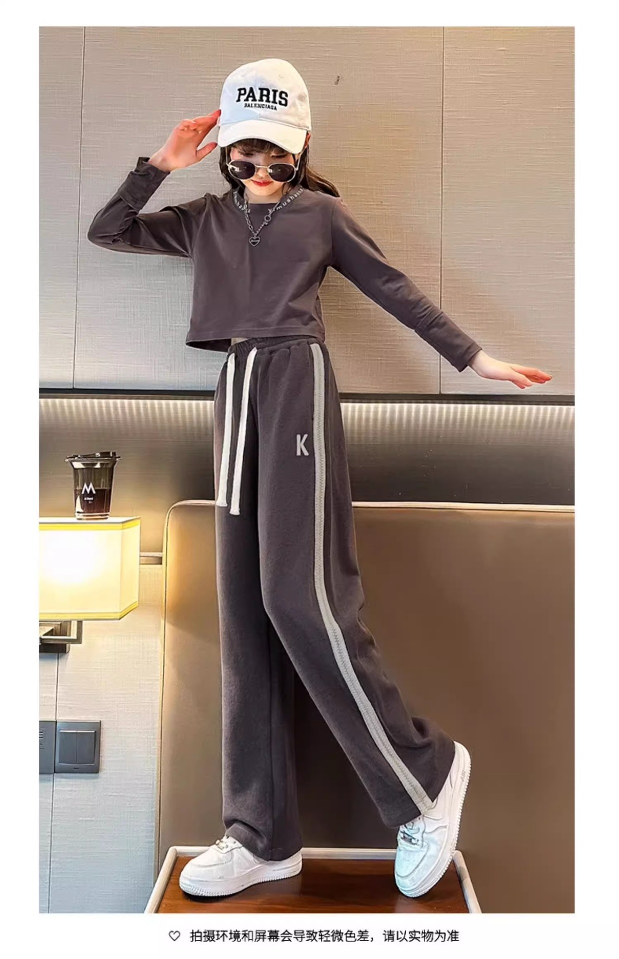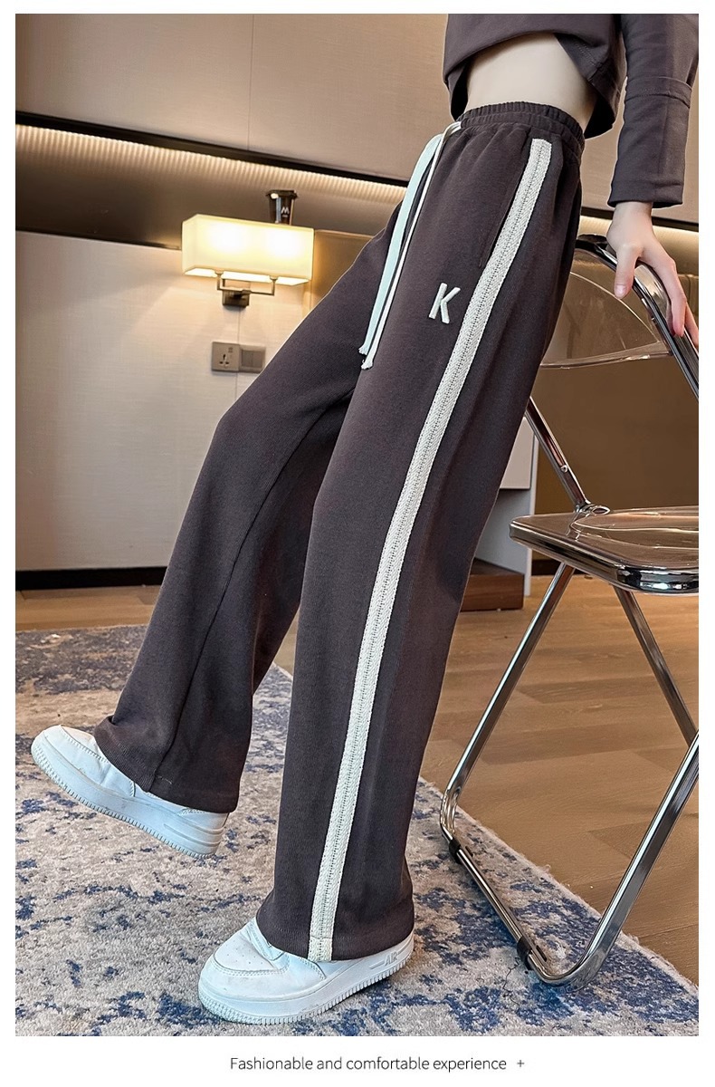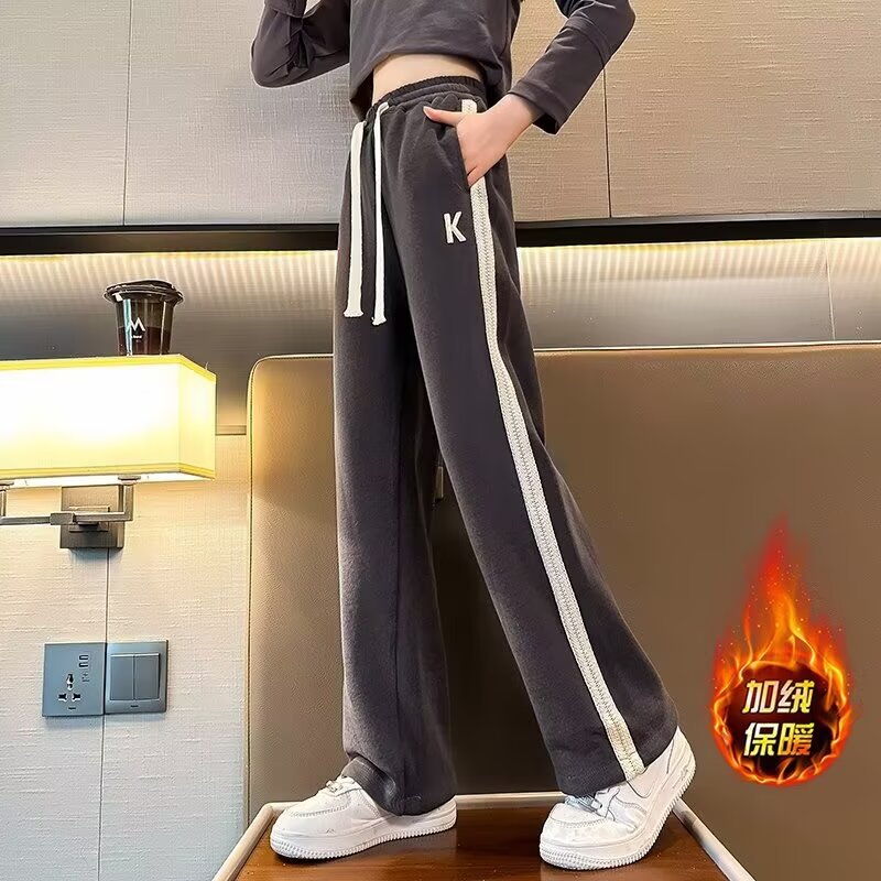 여자 기모 바지 가을 겨울 2024 새로운 도착 중다 어린이 원피스 양털 두꺼운 와이드 레그 바지 겨울 스포츠 바지