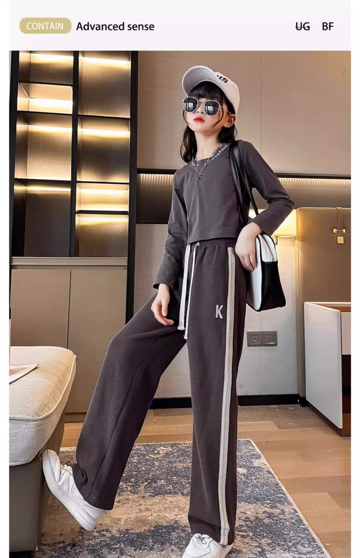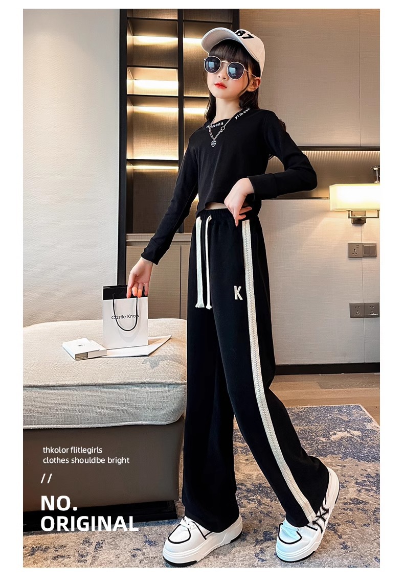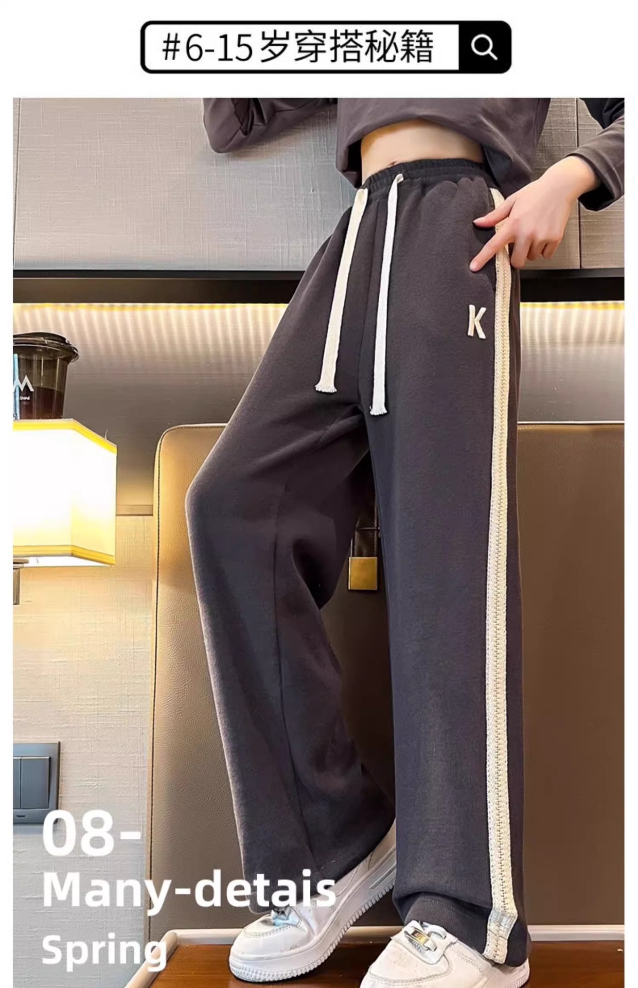 여자 기모 바지 가을 겨울 2024 새로운 도착 중다 어린이 원피스 양털 두꺼운 와이드 레그 바지 겨울 스포츠 바지