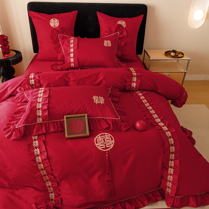 웨딩 4 피스 웨딩 큰 빨간 침대 시트 퀼트 커버 100 긴 스테이플 코튼 웨딩 룸 침구 4