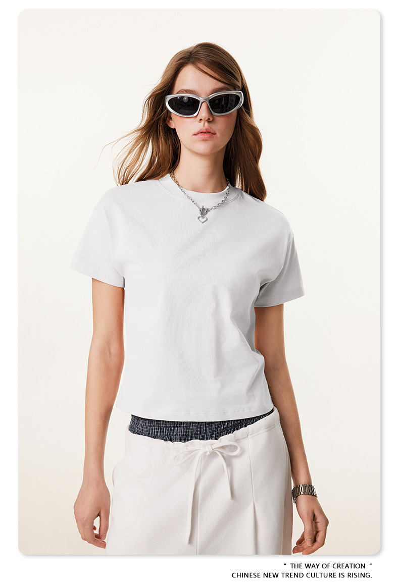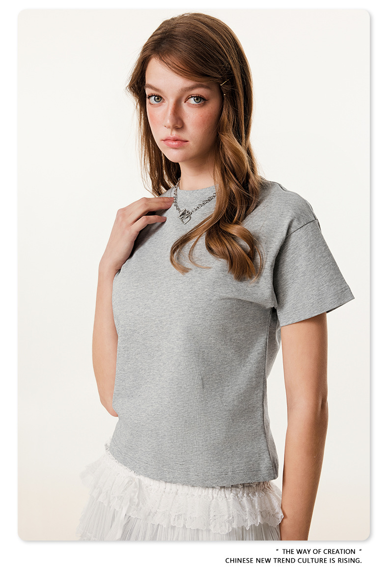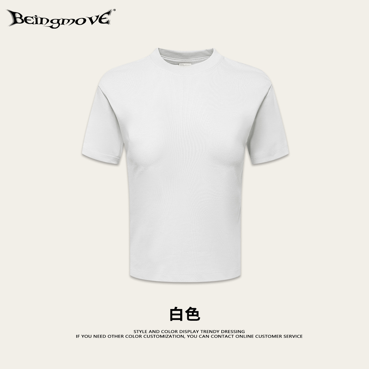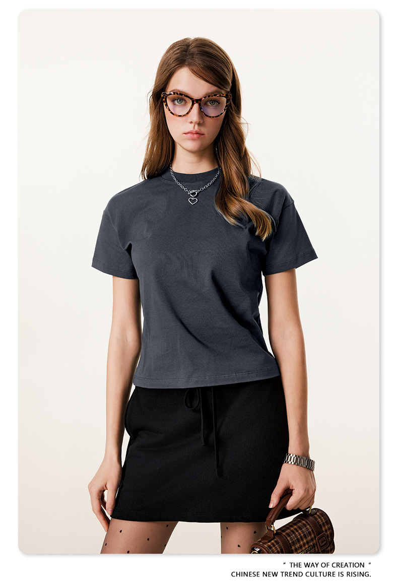 2025년 여름 고품질 유명 브랜드 OEM 무지 미우 스타일 캐주얼 여성 상의 루즈핏 반팔 오버숄더 티셔츠