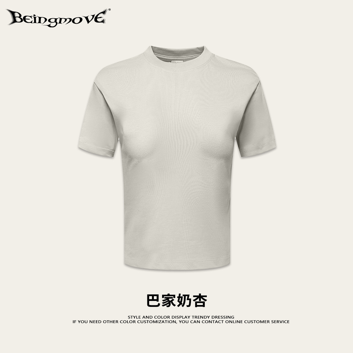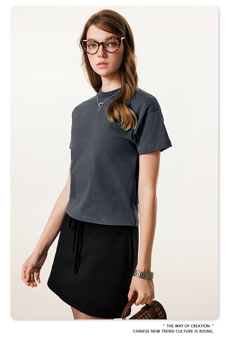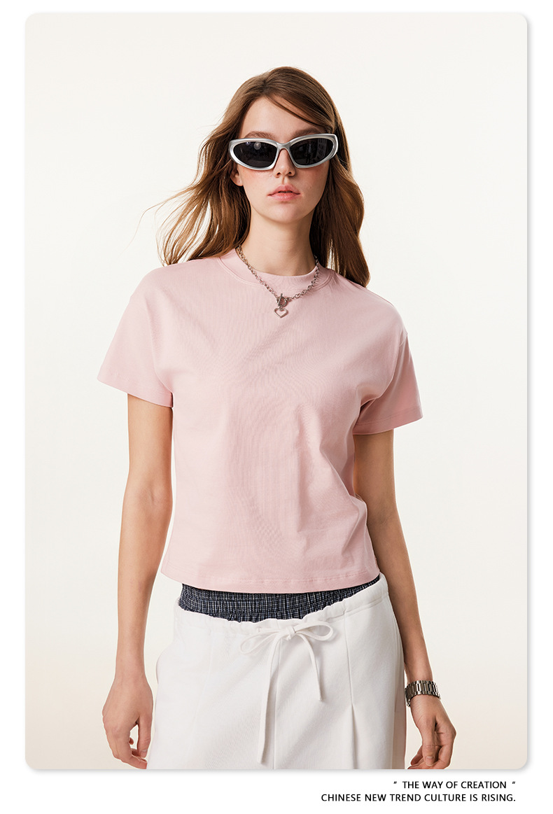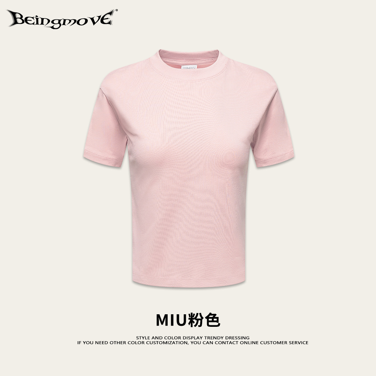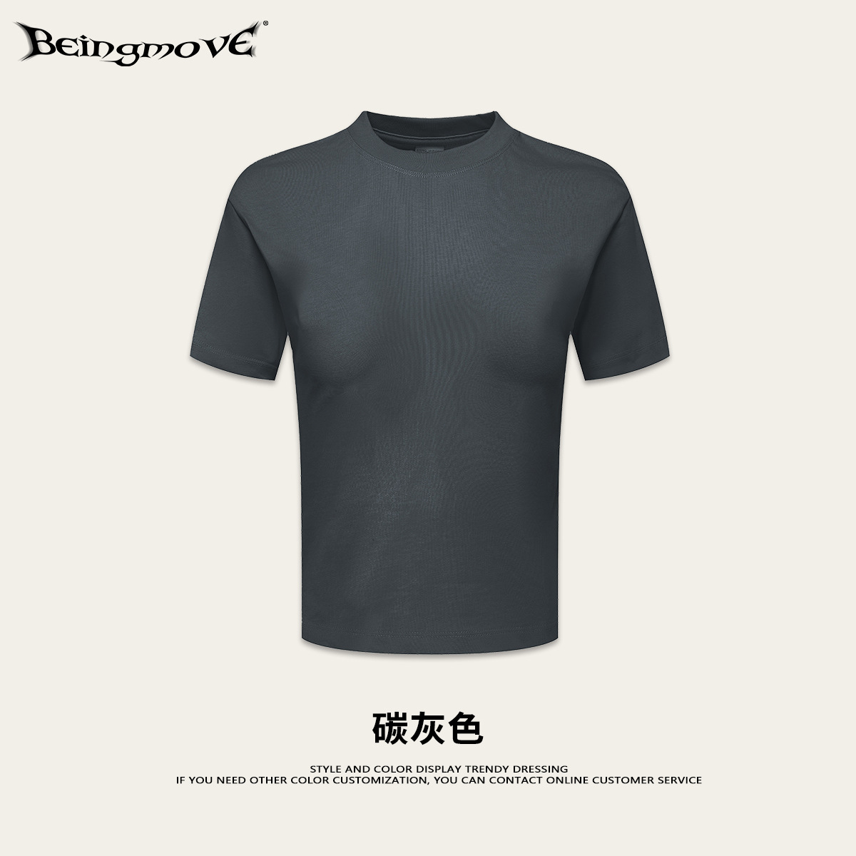 2025년 여름 고품질 유명 브랜드 OEM 무지 미우 스타일 캐주얼 여성 상의 루즈핏 반팔 오버숄더 티셔츠
