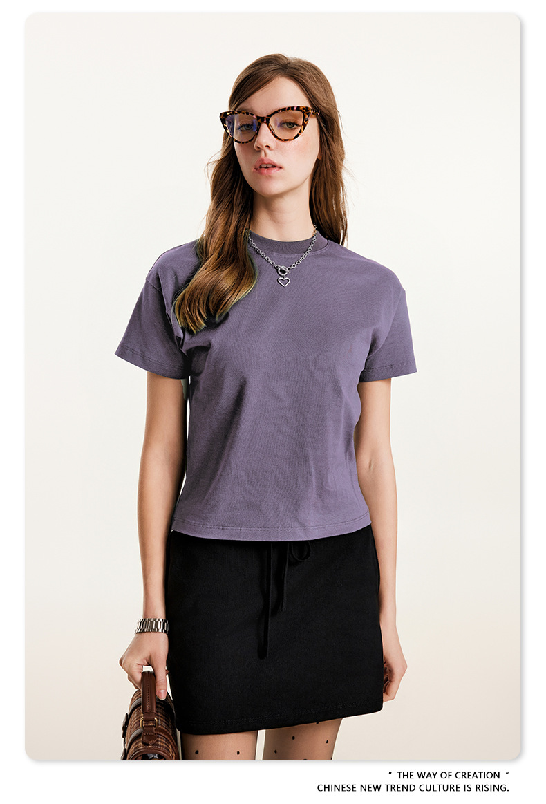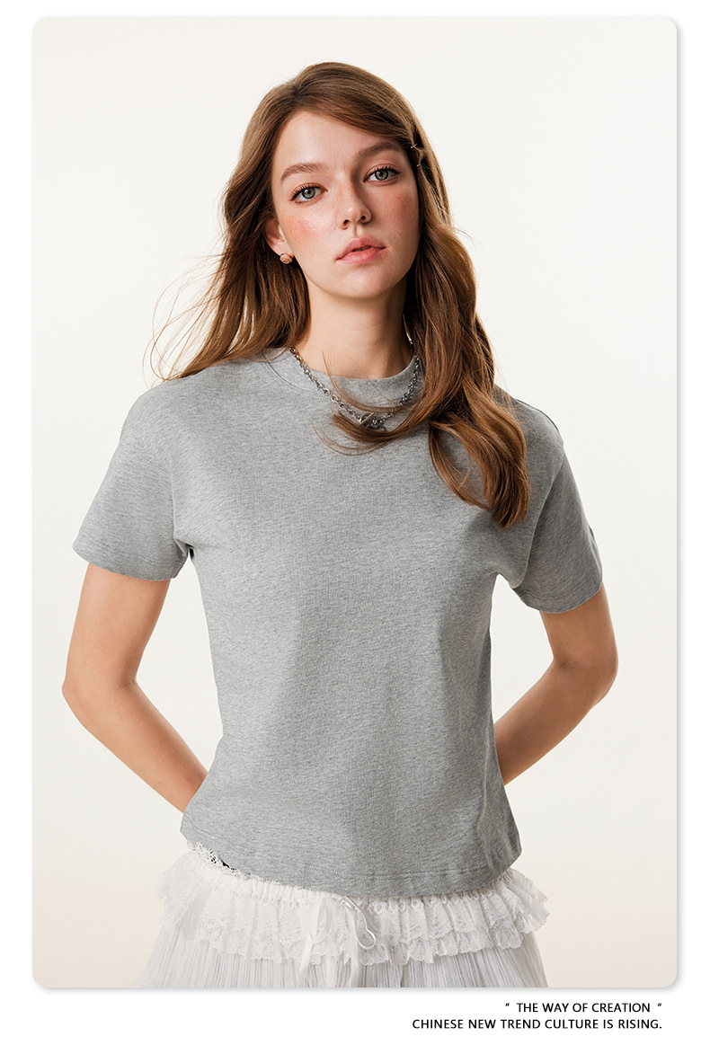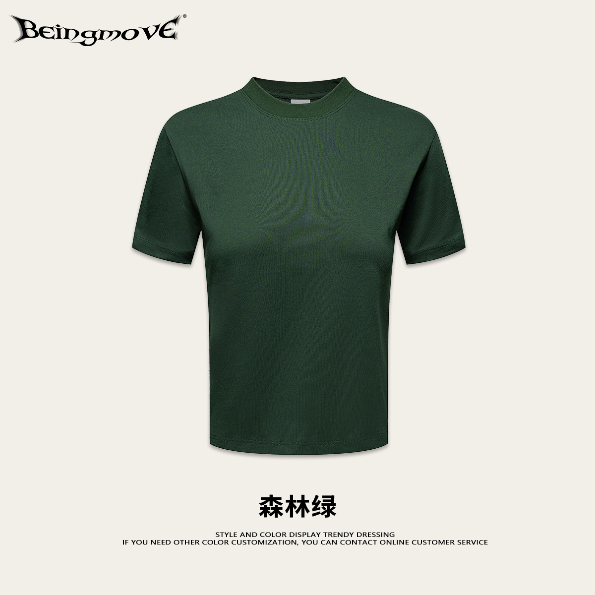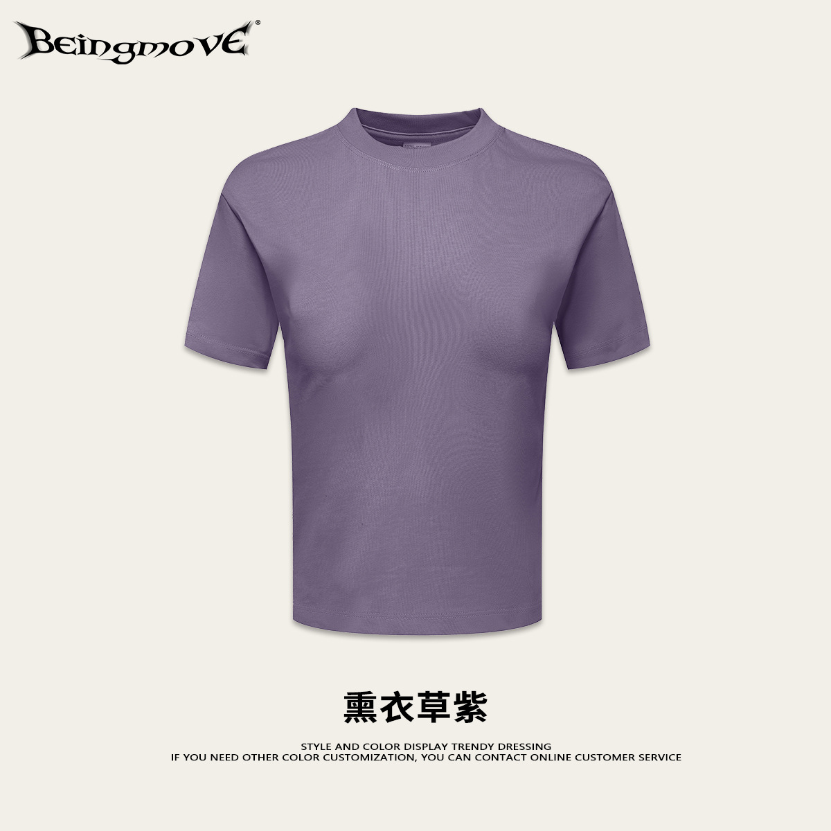 2025년 여름 고품질 유명 브랜드 OEM 무지 미우 스타일 캐주얼 여성 상의 루즈핏 반팔 오버숄더 티셔츠