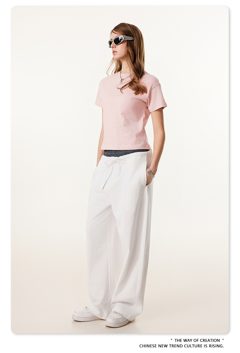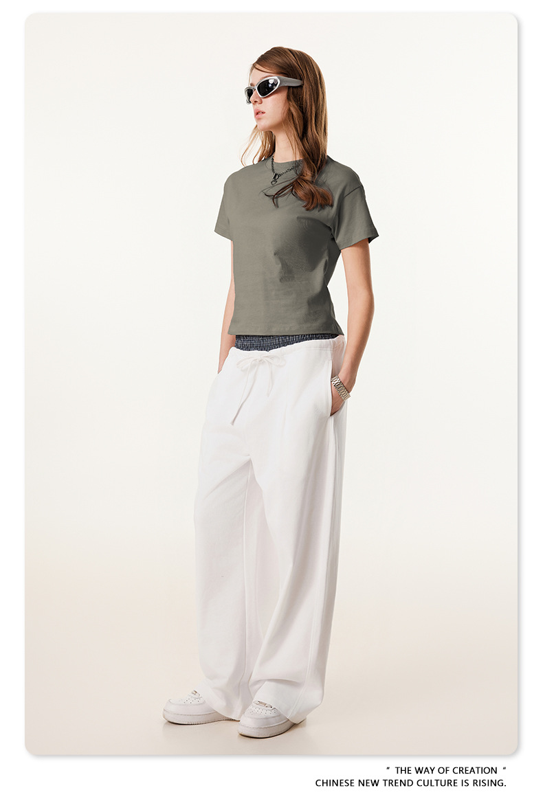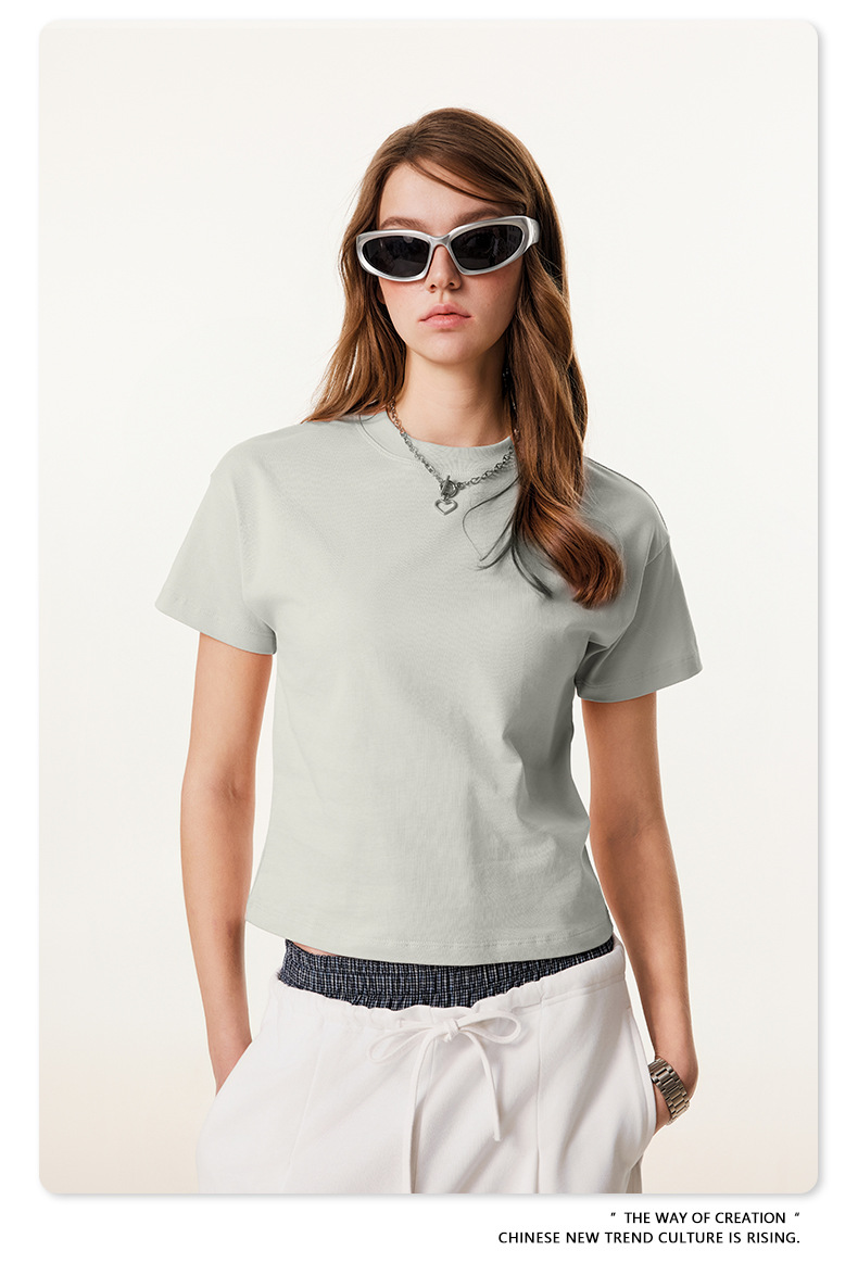 2025년 여름 고품질 유명 브랜드 OEM 무지 미우 스타일 캐주얼 여성 상의 루즈핏 반팔 오버숄더 티셔츠스토어 가기
