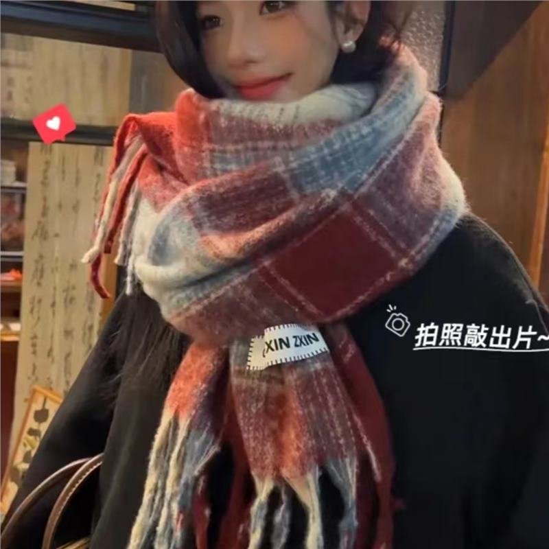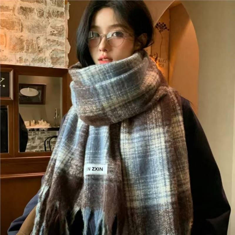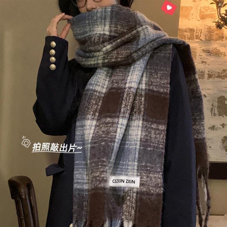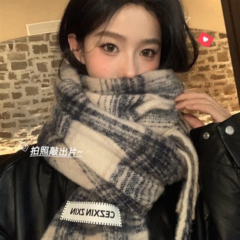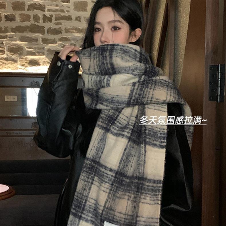 스카프 가을과 겨울 여성의 2024 새로운 격자 무늬 목도리 한국식 하이 엔드 분위기 두꺼운 따뜻한 커플 스카프스토어 가기