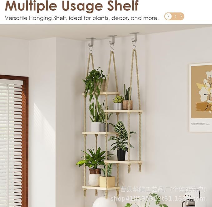 나무 식물 랙 거실 벽 교수형 로프 장식 랙 작은 꽃 랙 욕실 용품 피팅 랙 솔리드 우드 스토리지 랙
