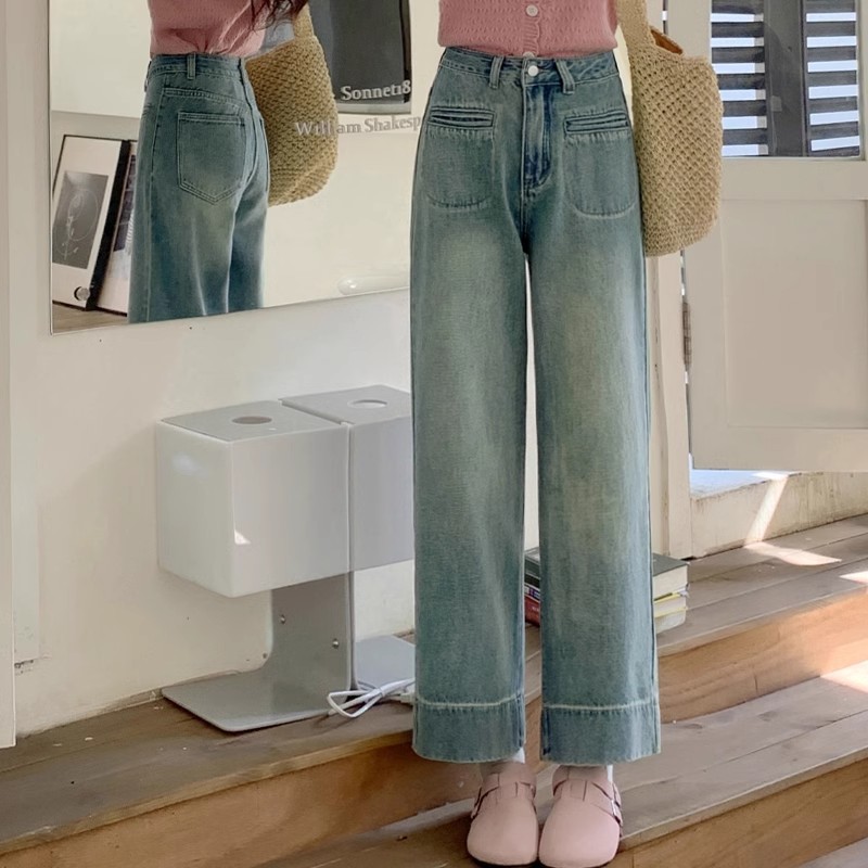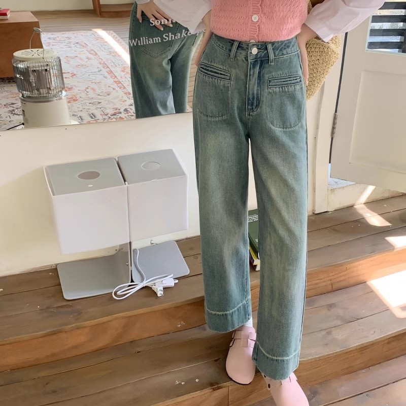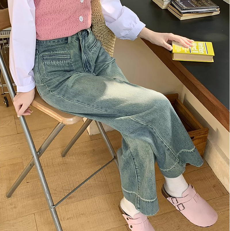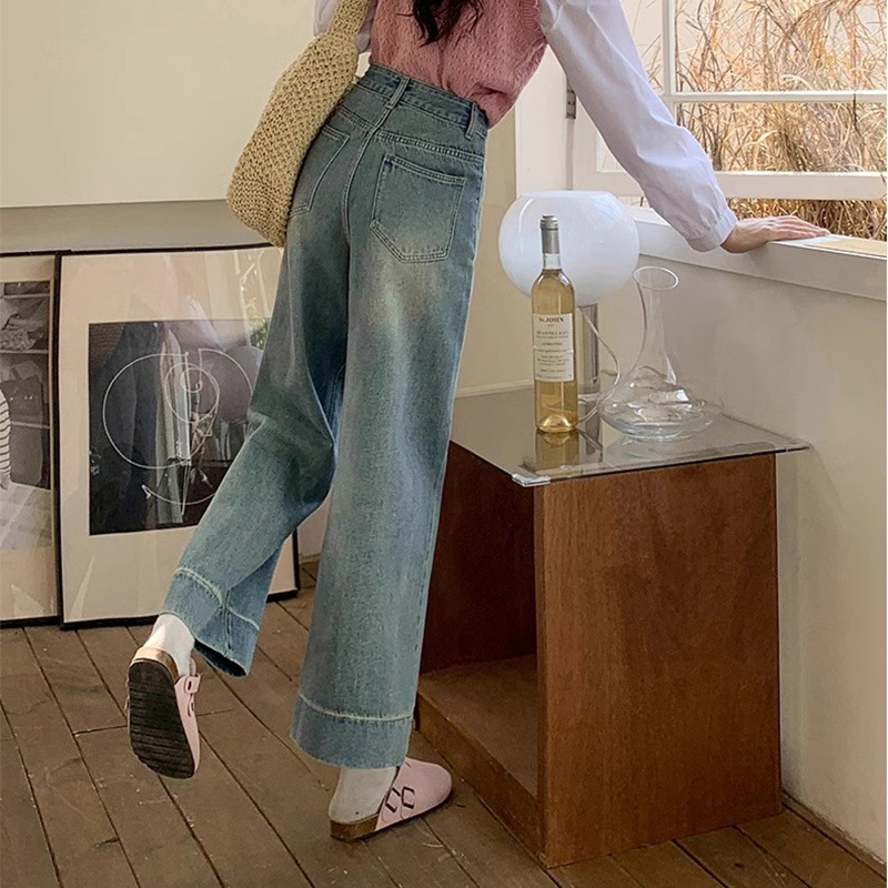 좁은 직선 다리 청바지 여성의 가을과 겨울 플러스 사이즈 통통녀 높은 허리 슬리밍 플랜지 디자인-센스 자른 넓은 다리 바지스토어 가기