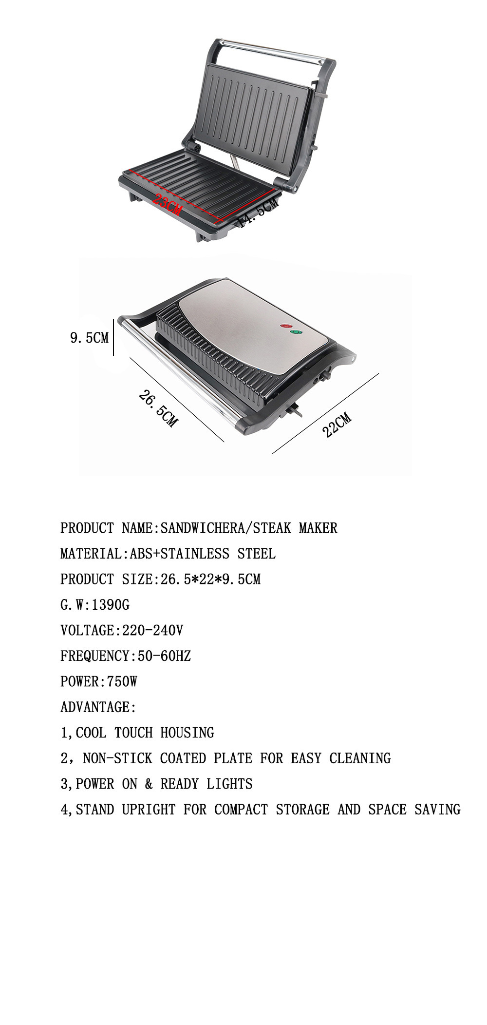 가정용 상하 가열식 평면형 바베큐 기계, 파니니 빵 굽기, 스테이크 굽기 기계, 입체 가열