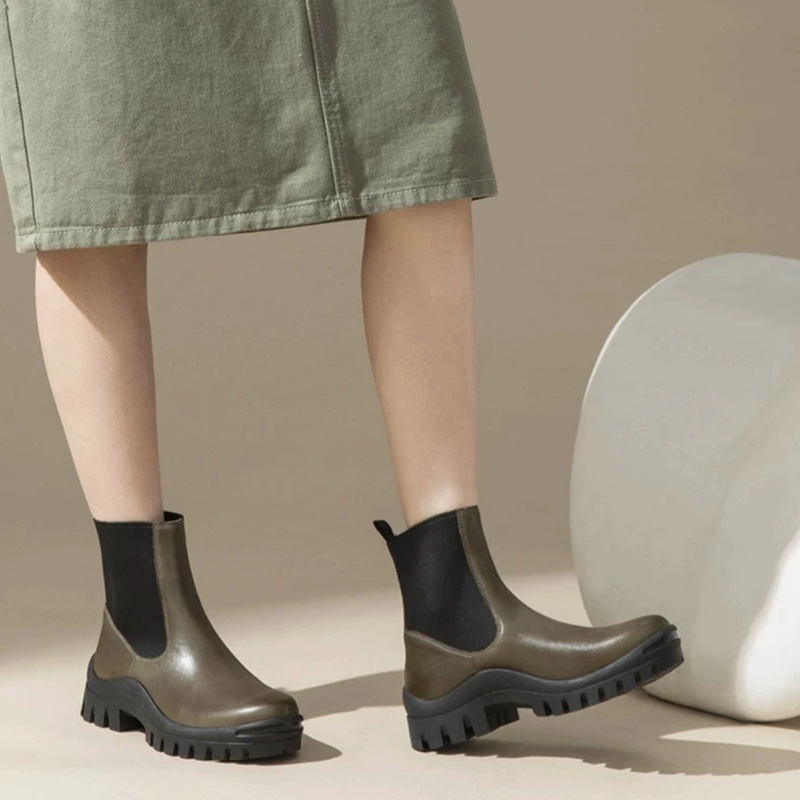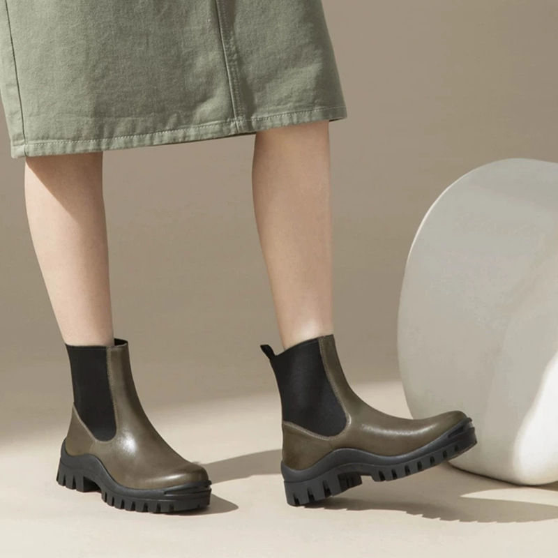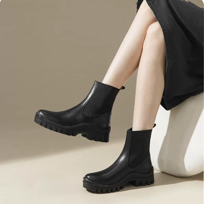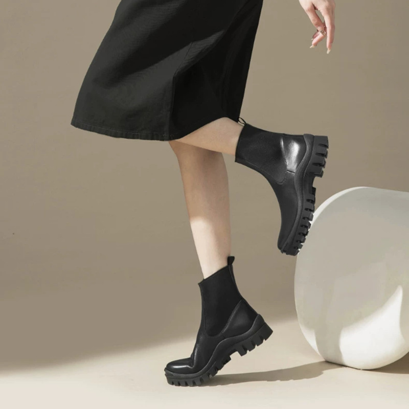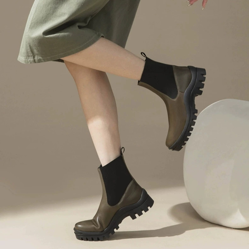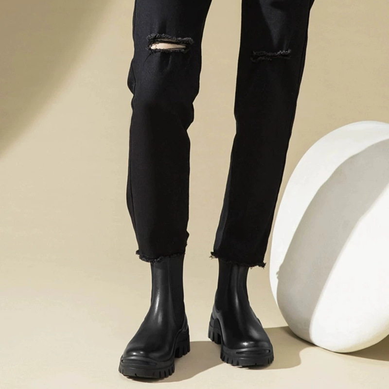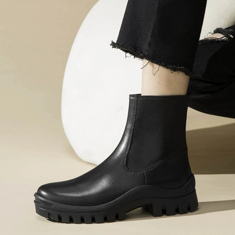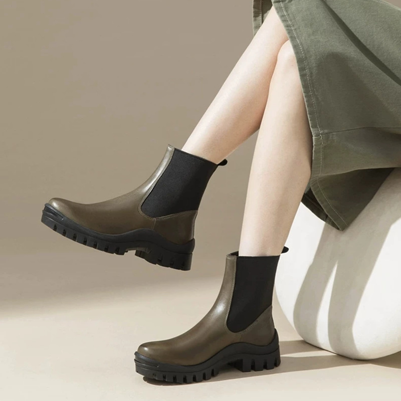 Real Cowhide Chelsea Ankle Boots 여성의 영국 두꺼운 밑창 증가 Martin Boots 미끄럼 방지 편안한 다리 연기 튜브 부츠 두꺼운 밑창스토어 가기