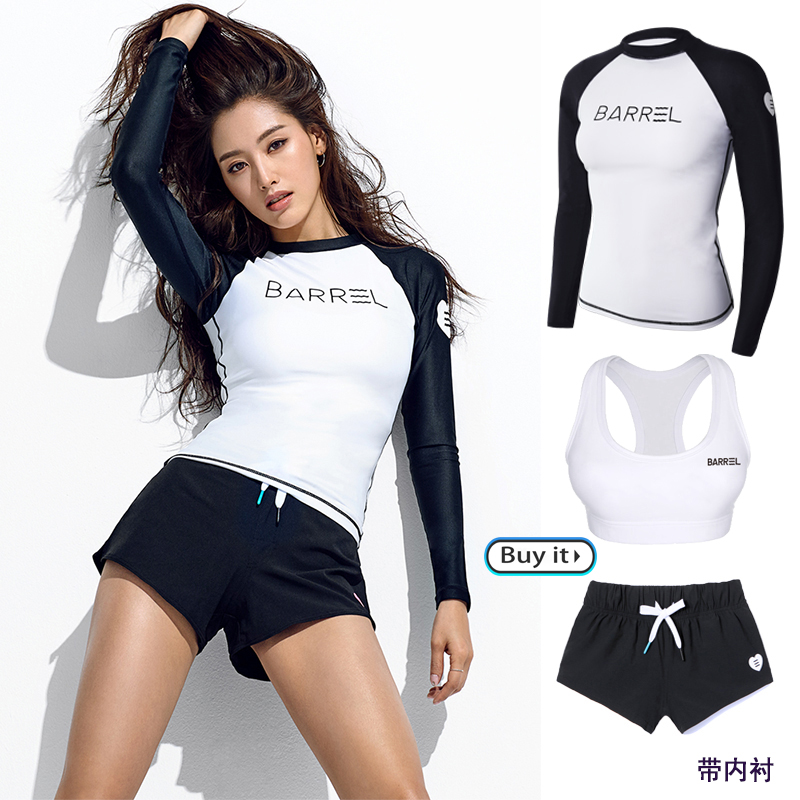 한국 다이빙 세트 여성 스플릿 선 스크린 빠른 건조 긴팔 수영복 여성 서핑 세트 스노클링 해파리 워터 여성의 보수적 슬림 핏스토어 가기