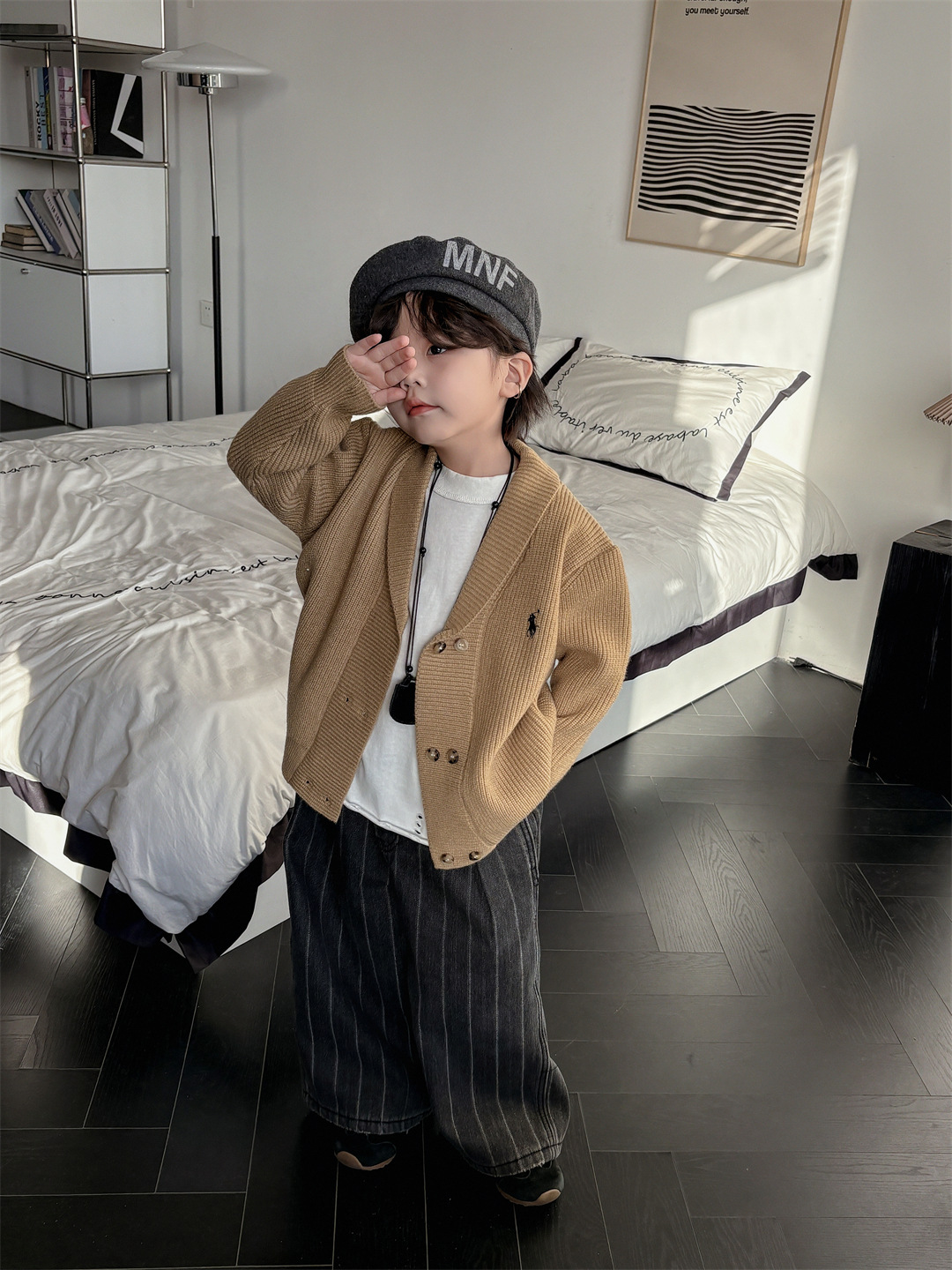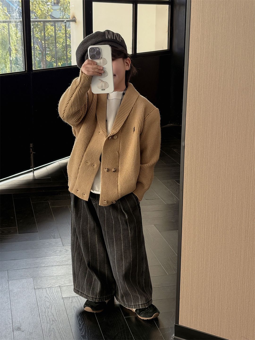 어린이 스웨터 2025 봄 카디건 보이즈 탑 니트 스웨터 코트 옷깃 탑 서양식 스웨터스토어 가기
