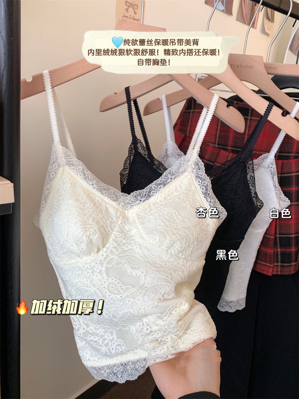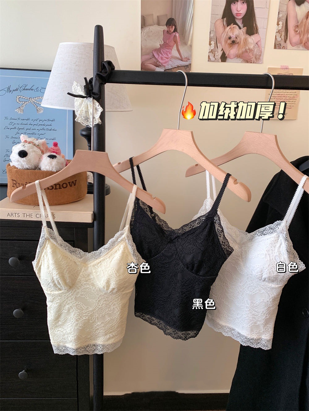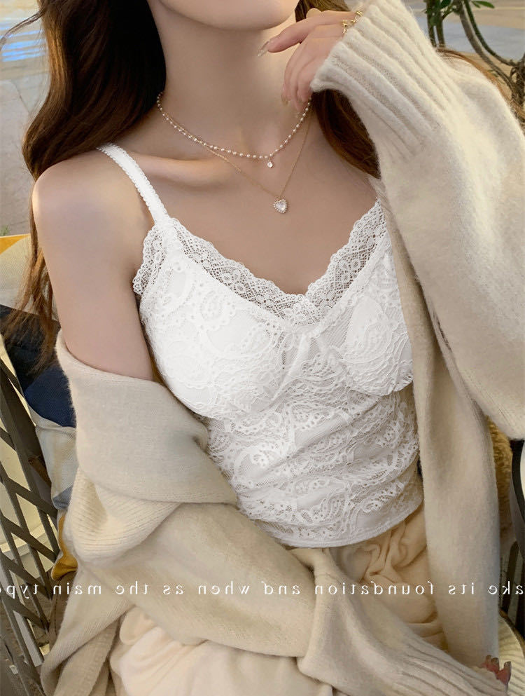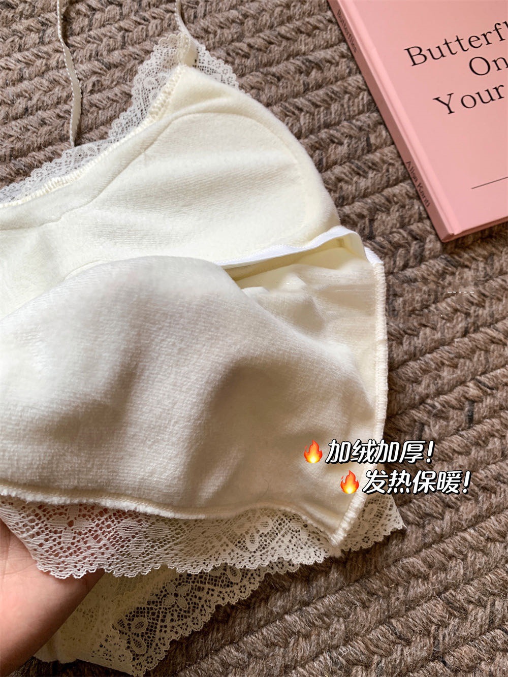 프랑스 스타일의 뜨거운 소녀 화이트 레이스 벨트 가슴 패드 기모 카미 솔 여성의 따뜻한 기지 내부 아름다운 뒷면