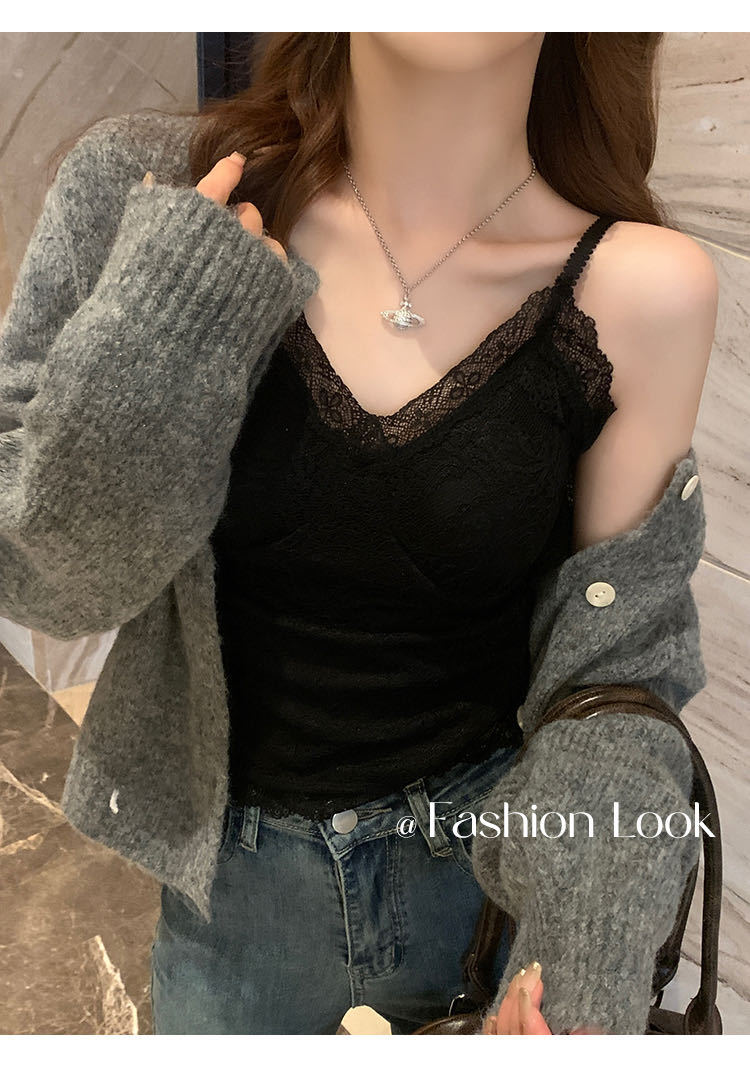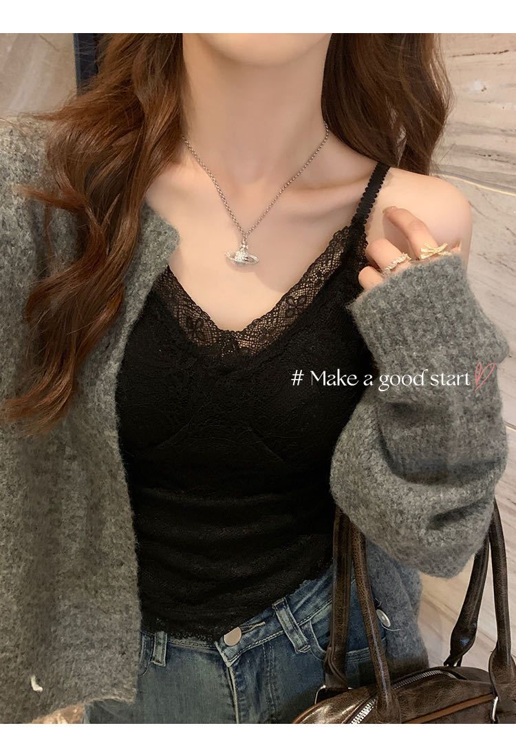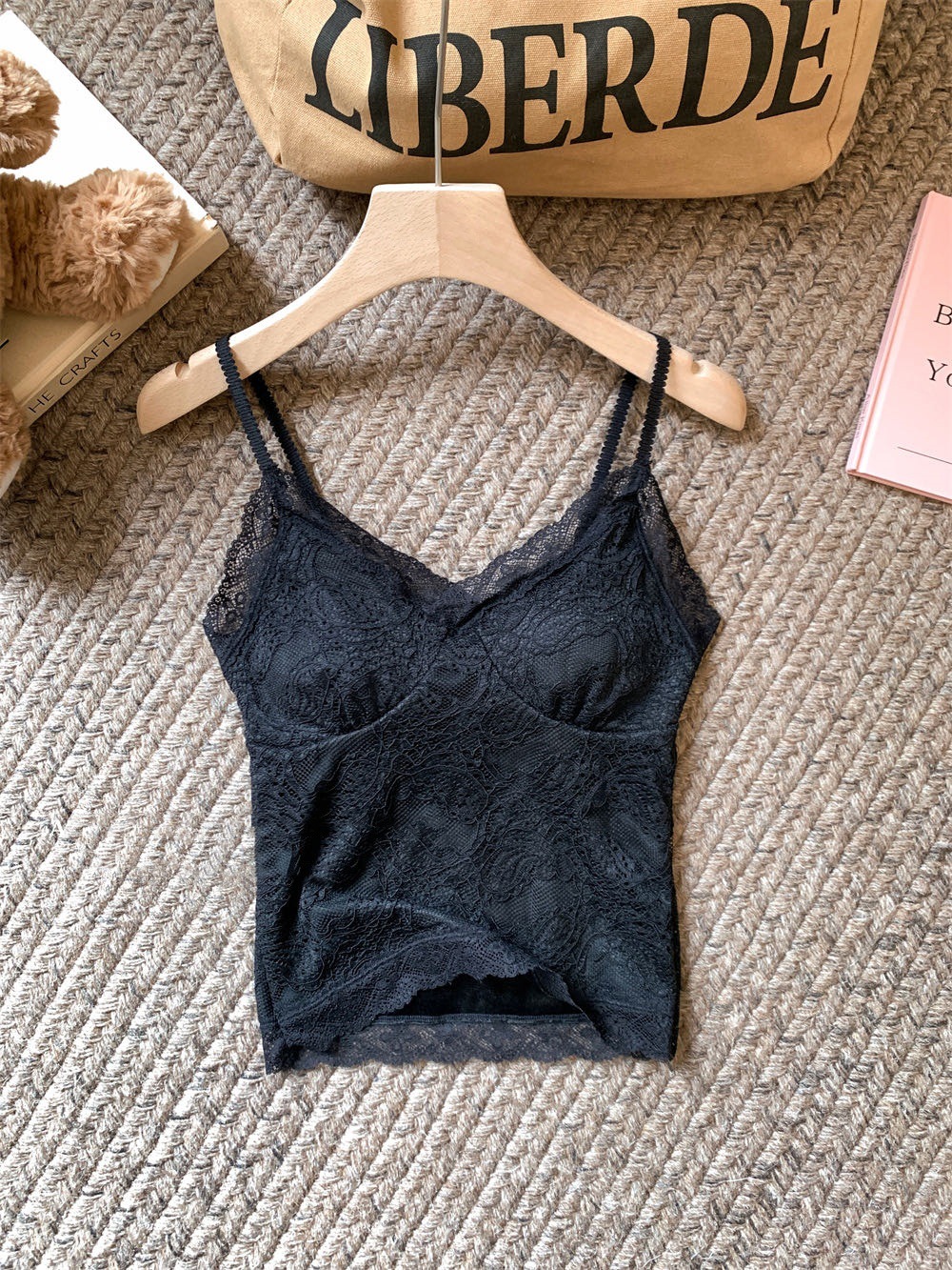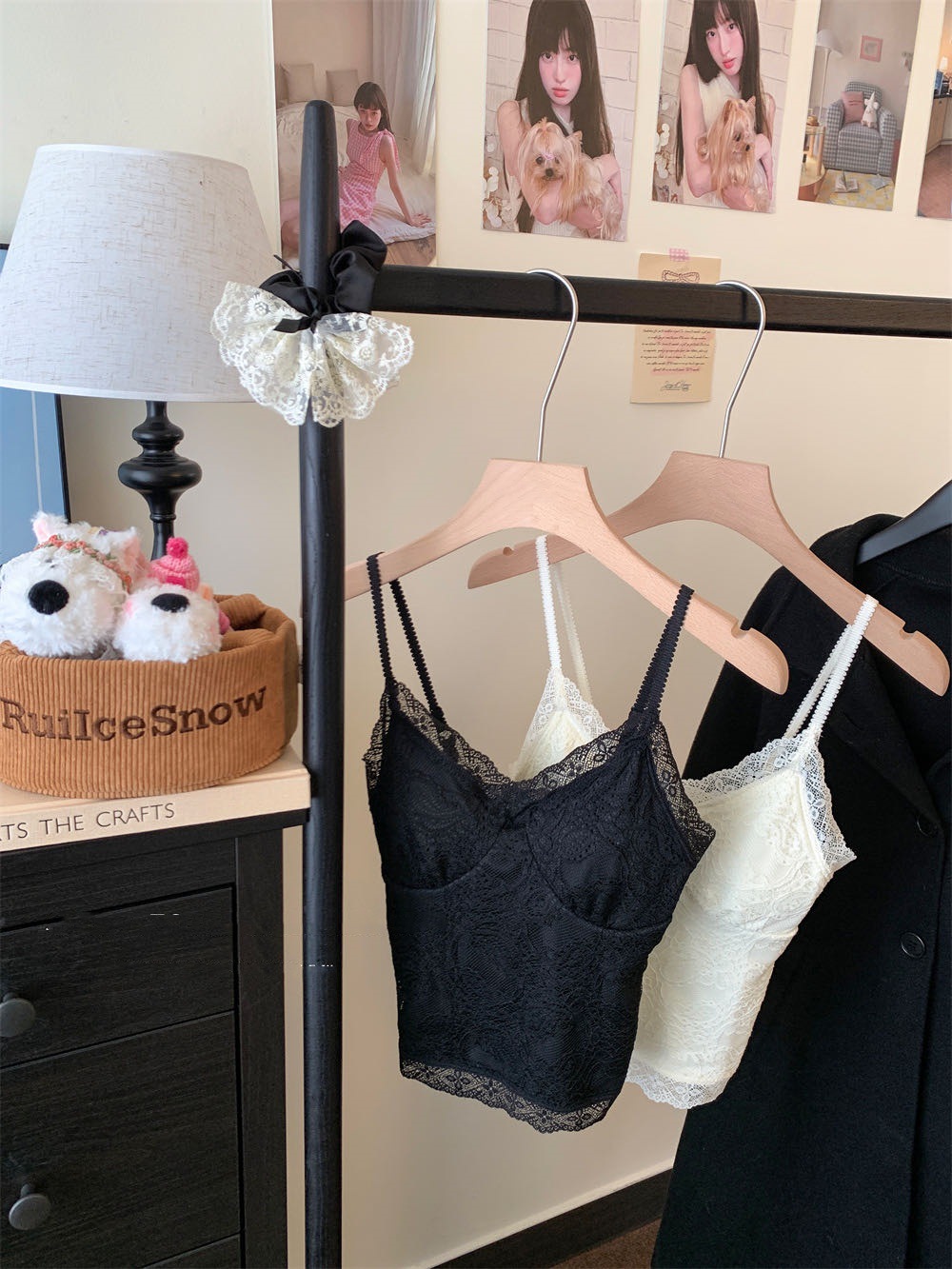프랑스 스타일의 뜨거운 소녀 화이트 레이스 벨트 가슴 패드 기모 카미 솔 여성의 따뜻한 기지 내부 아름다운 뒷면