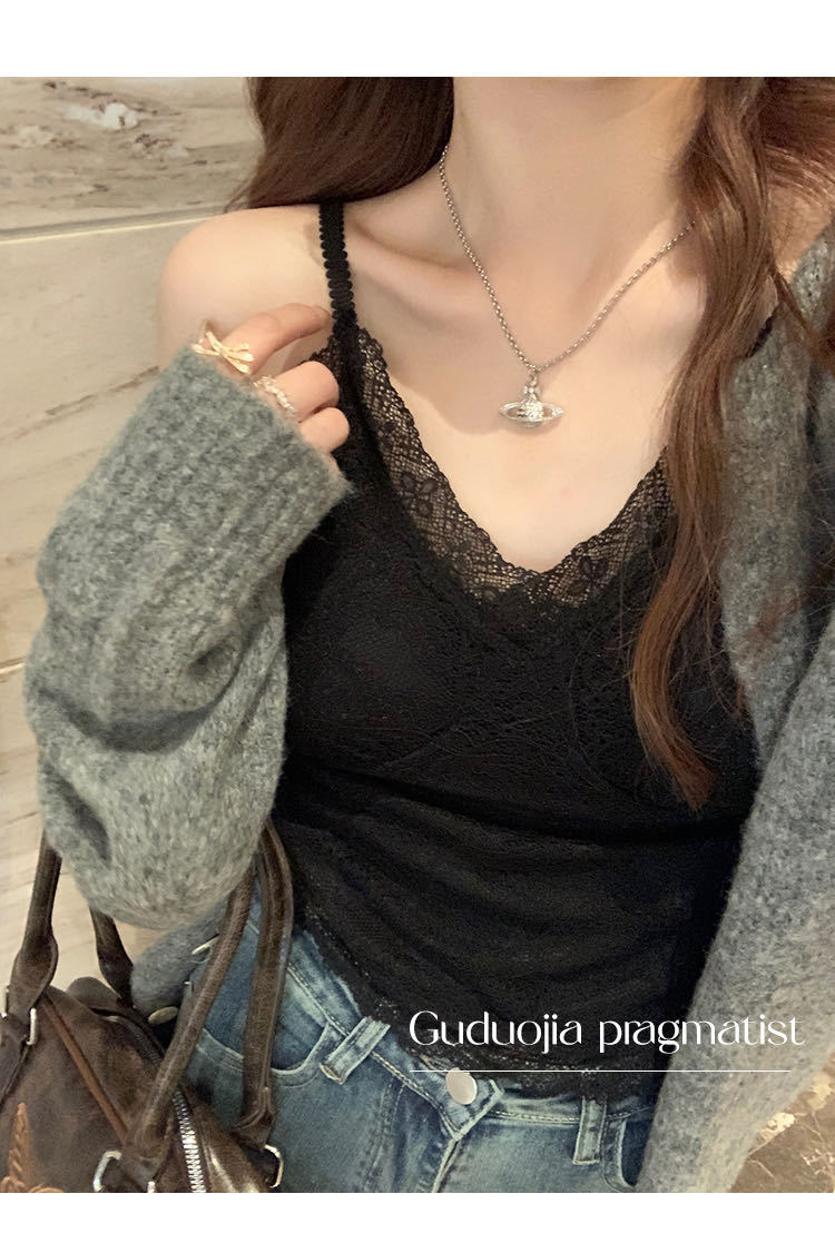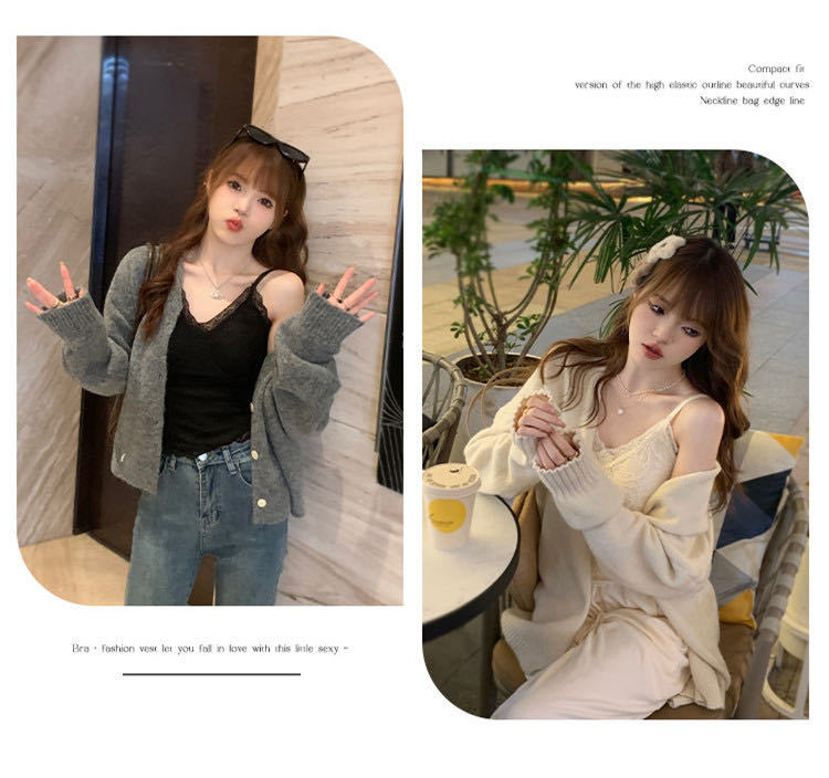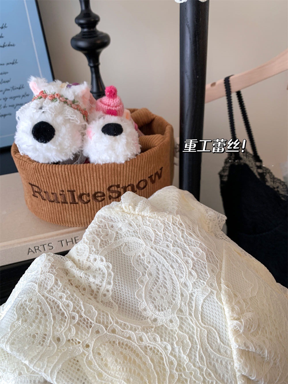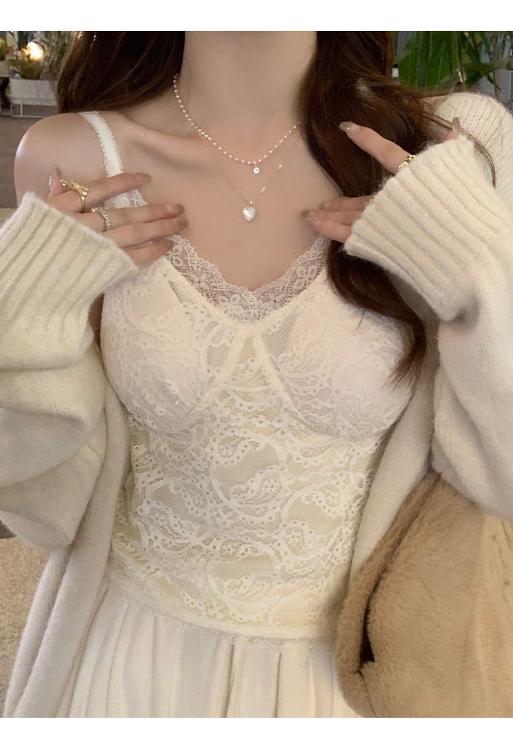 프랑스 스타일의 뜨거운 소녀 화이트 레이스 벨트 가슴 패드 기모 카미 솔 여성의 따뜻한 기지 내부 아름다운 뒷면스토어 가기