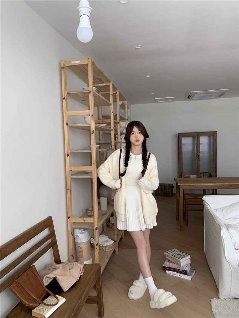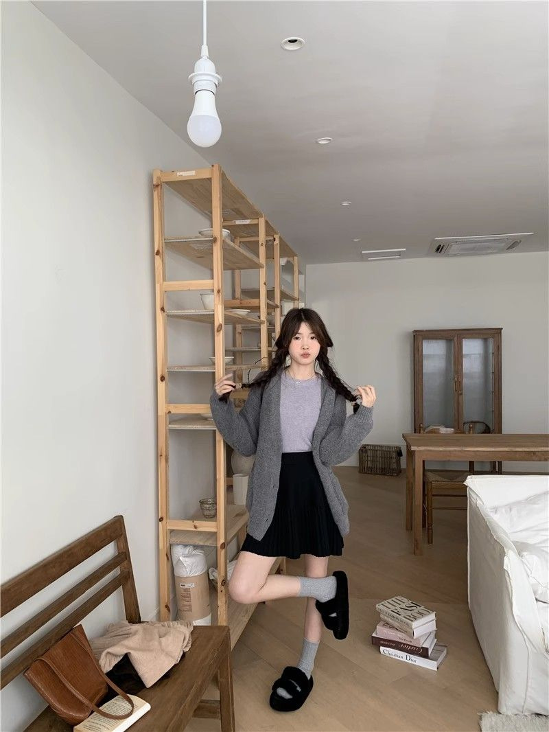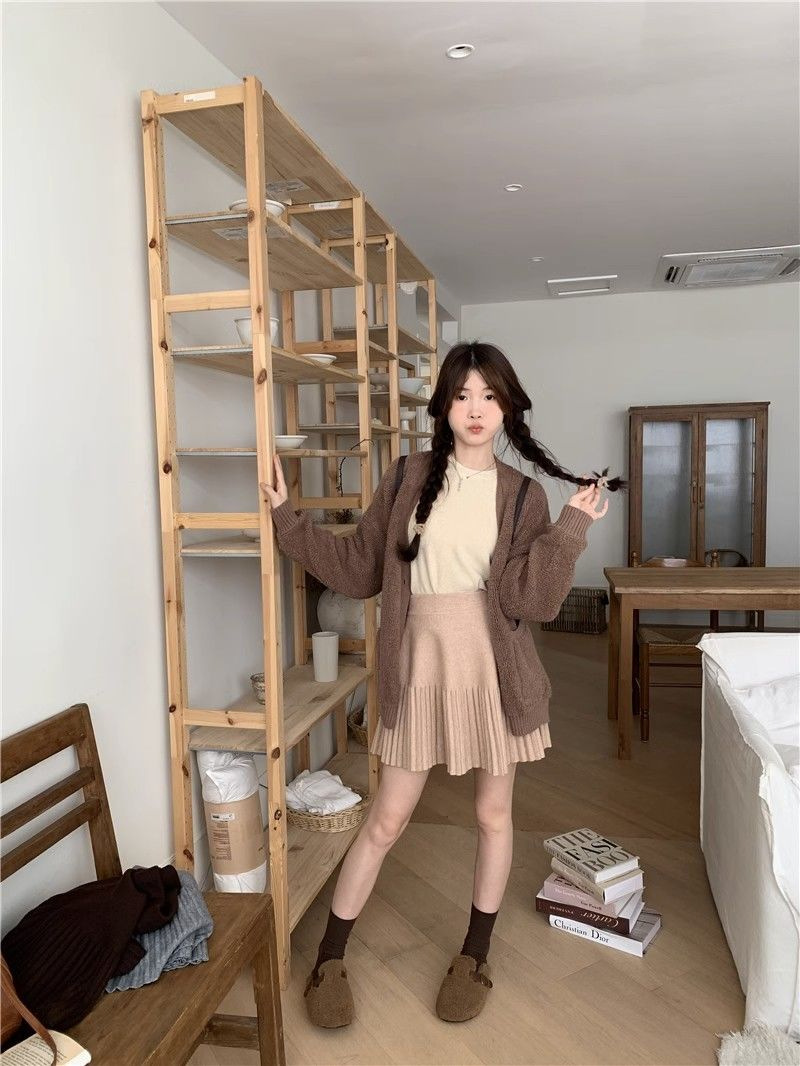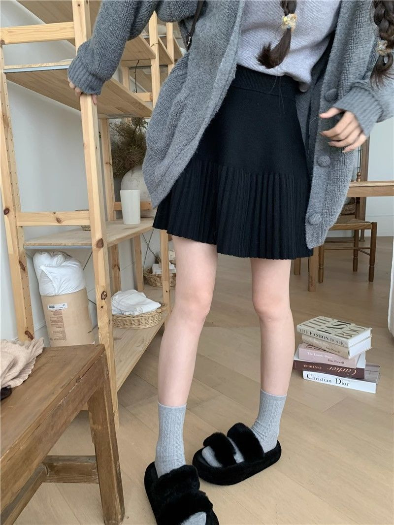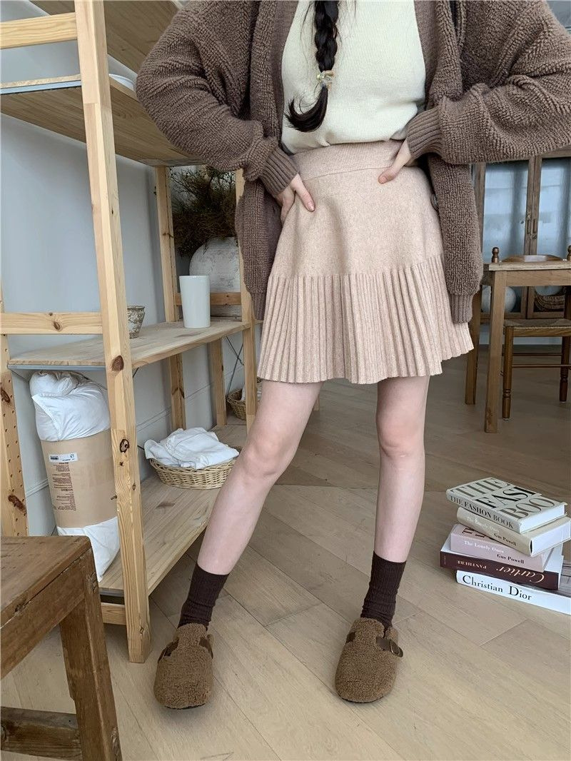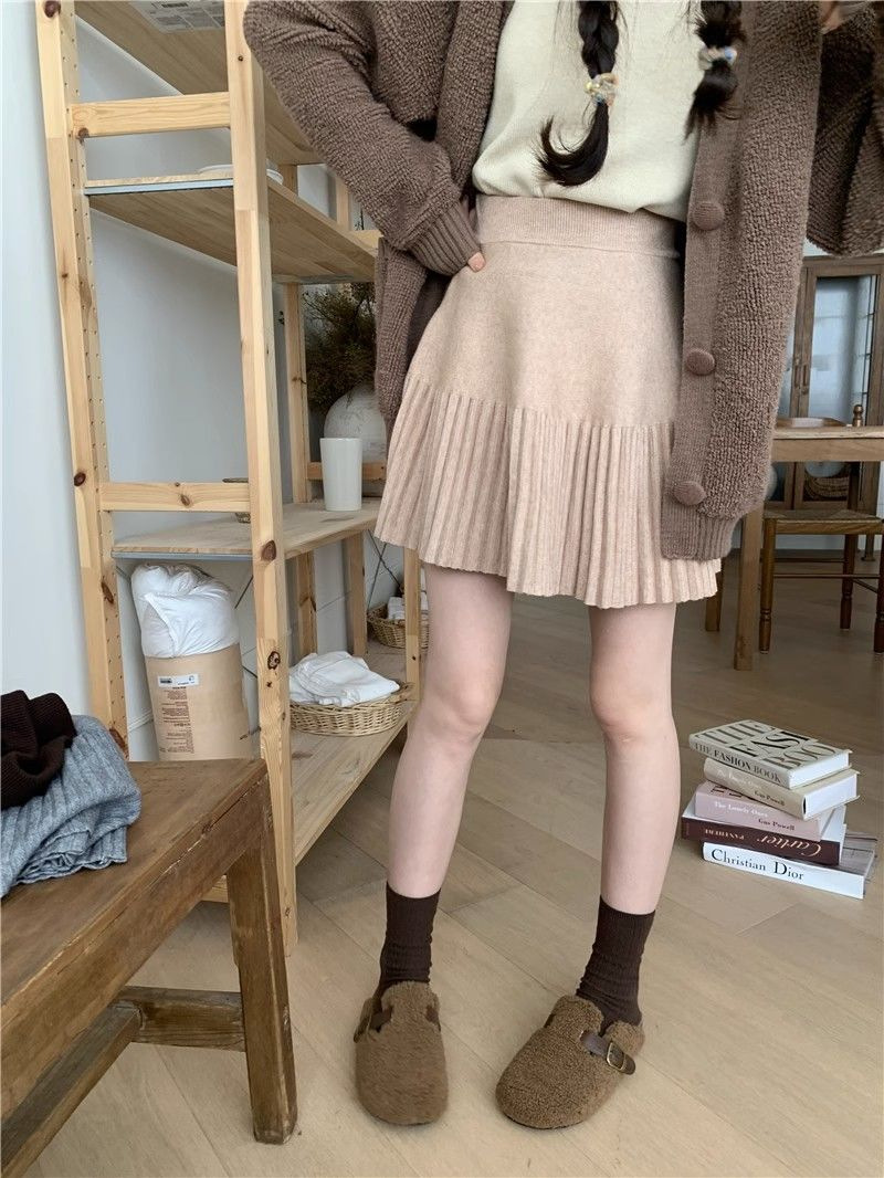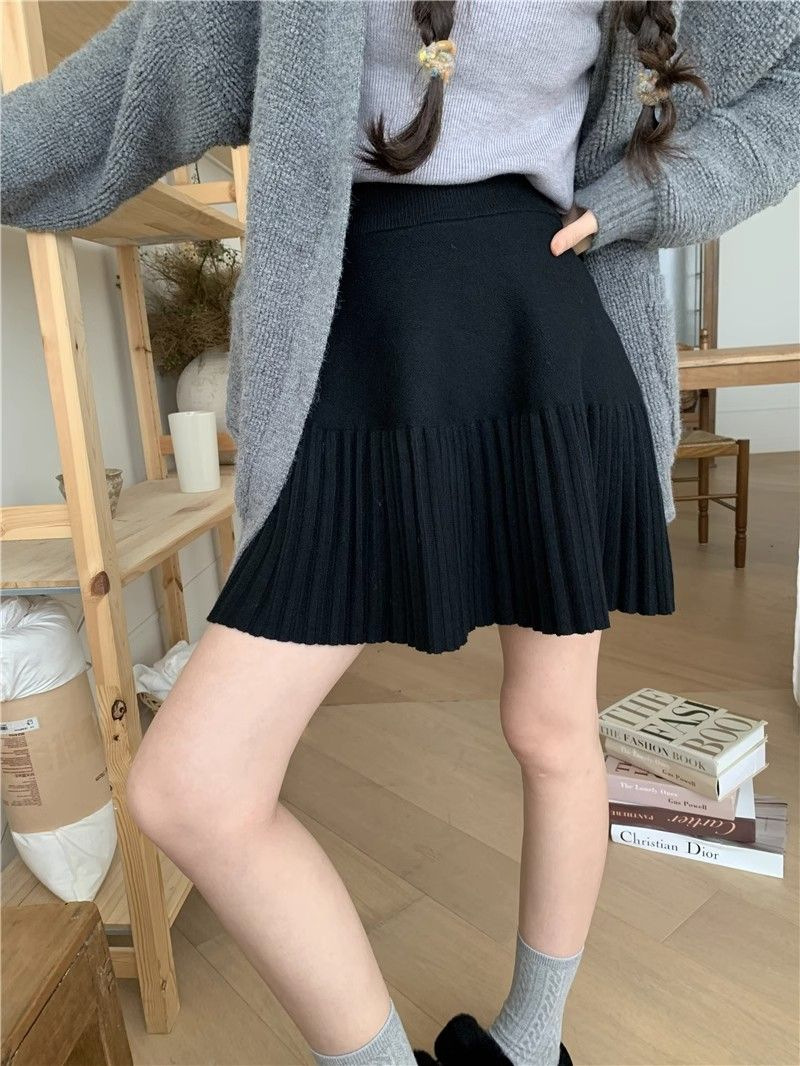 TikTok Tmall 품질 가을과 겨울 새로운 디자인 주름 치마 높은 허리 슬리밍 스커트 올 매치 A 라인 스커트스토어 가기