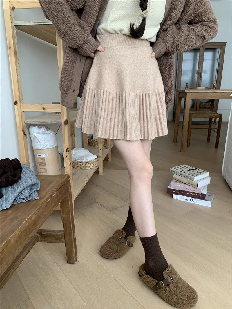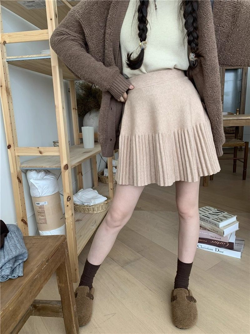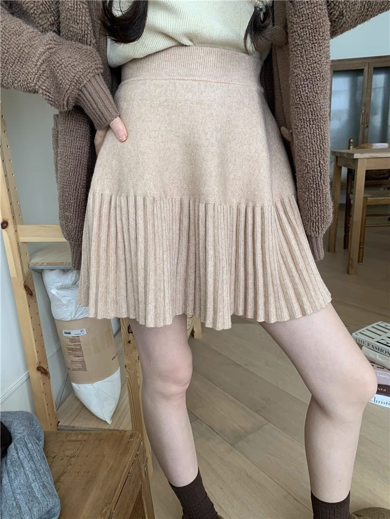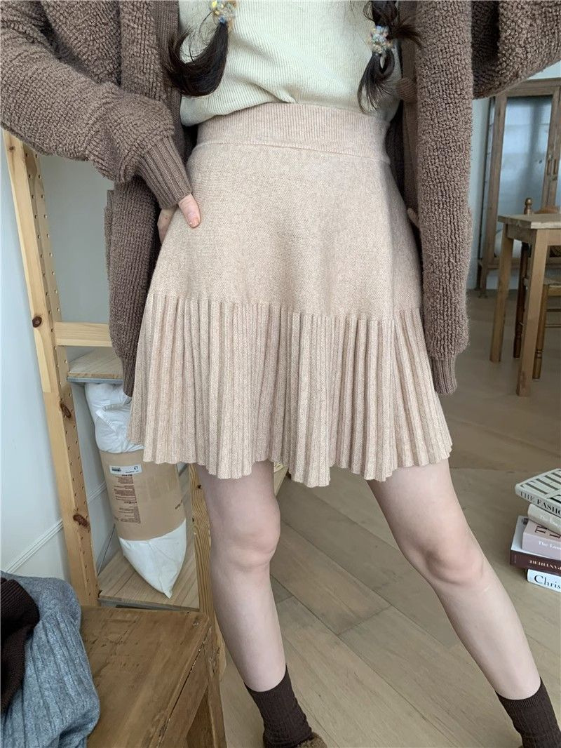 TikTok Tmall 품질 가을과 겨울 새로운 디자인 주름 치마 높은 허리 슬리밍 스커트 올 매치 A 라인 스커트
