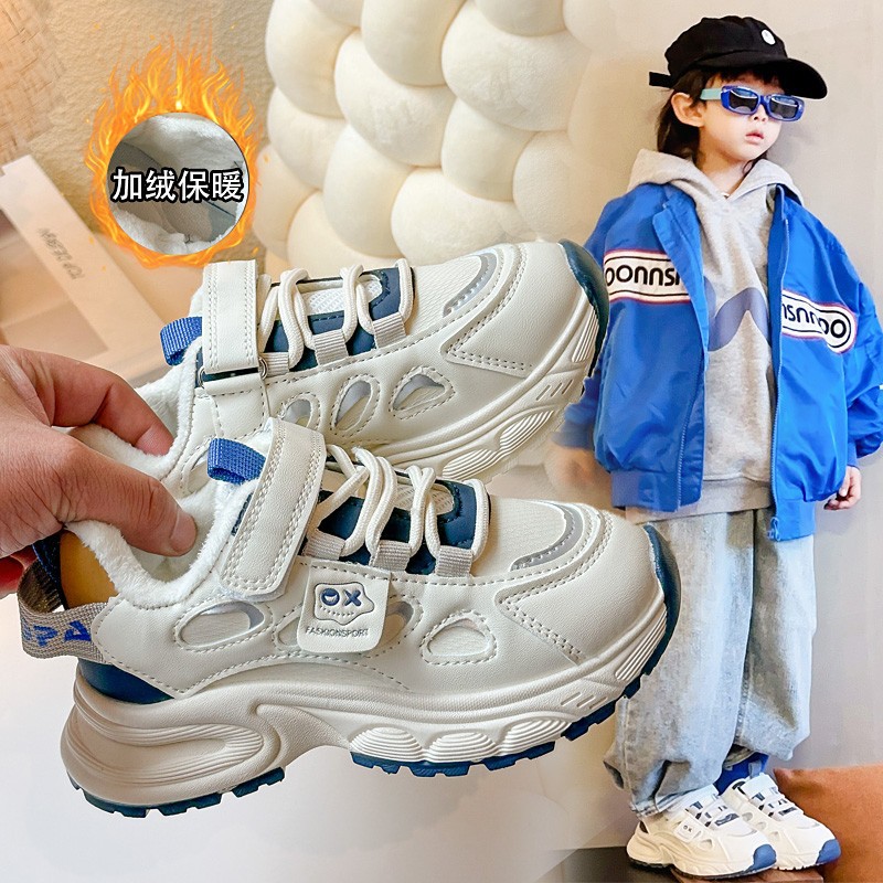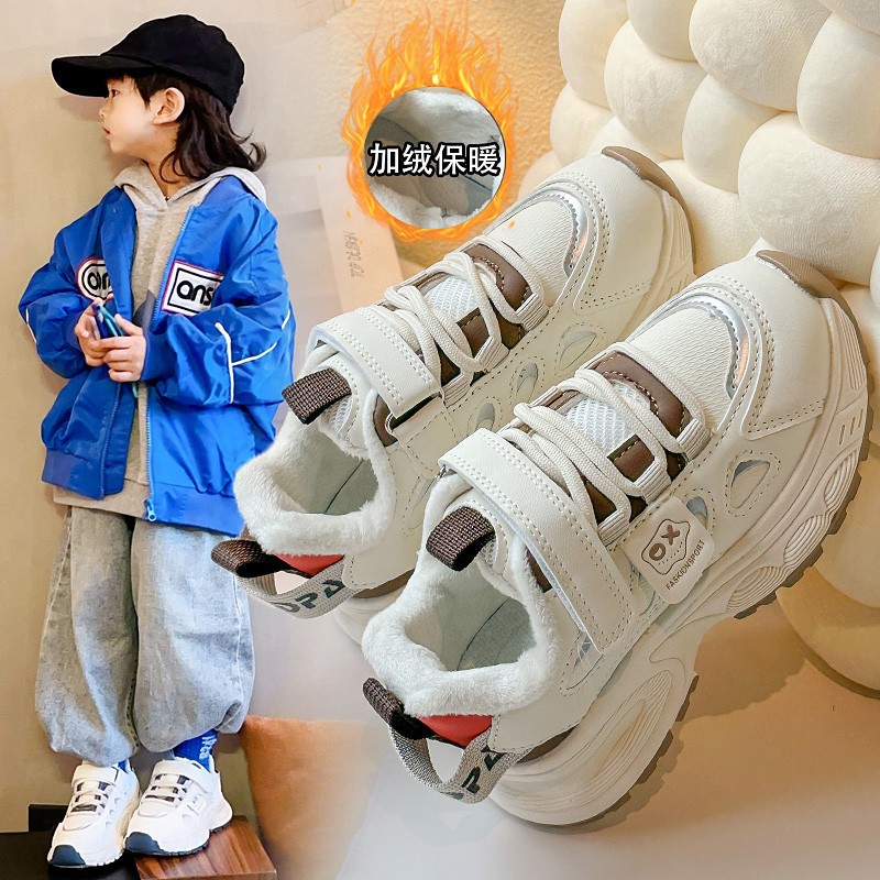 소년 신발 겨울 2024 새로운 어린이 기모 따뜻한 스포츠 코튼 신발 소녀 트렌디 브랜드 빅 보이 토레 신발스토어 가기