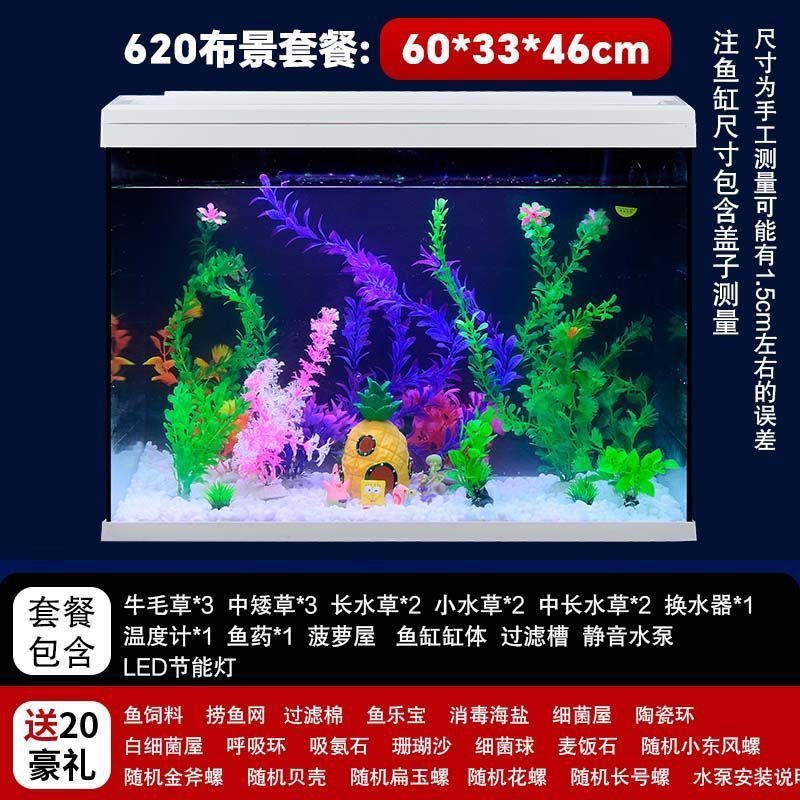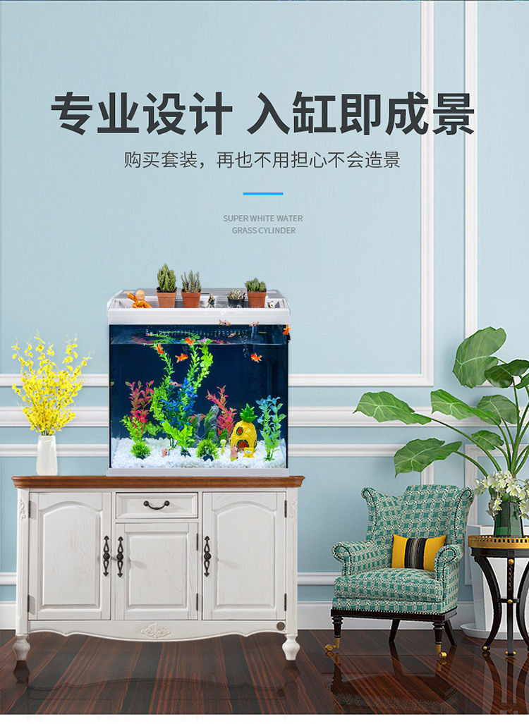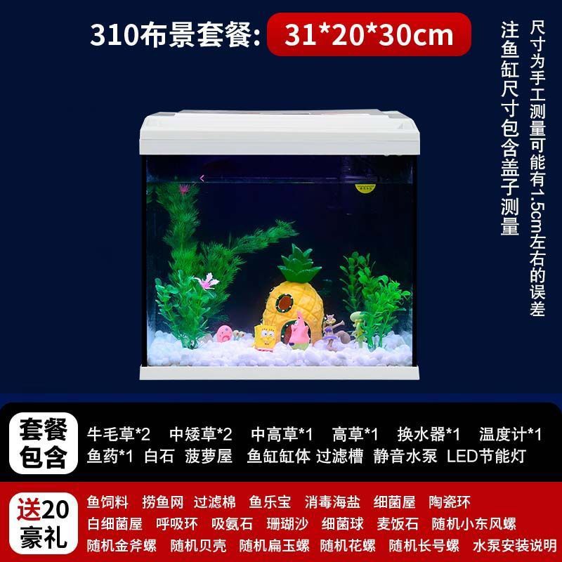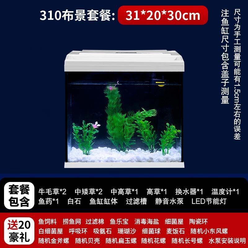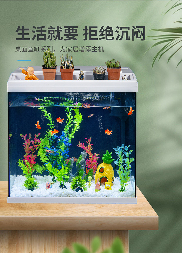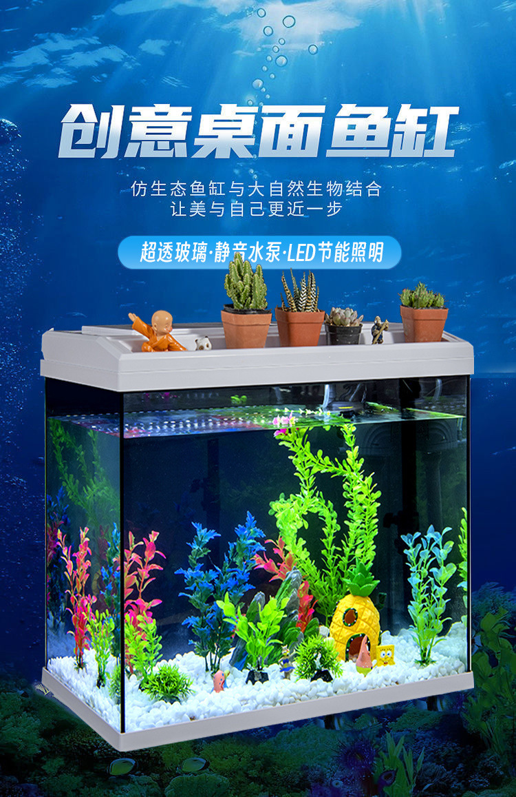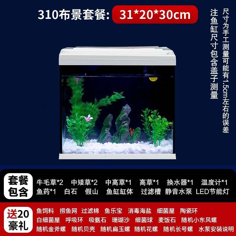 물고기 탱크 물없는 거실 금붕어 탱크 가정용 게으른 데스크탑 유리 풍경 생태 중소 수족관 통관스토어 가기