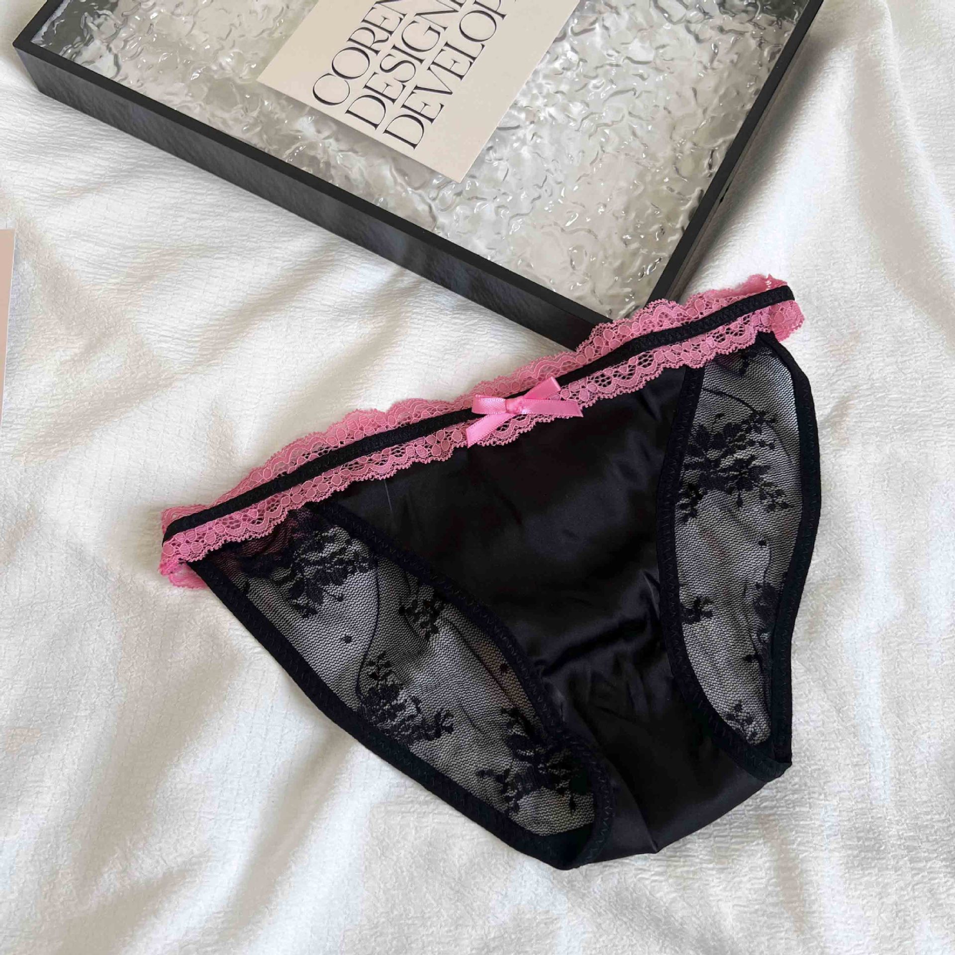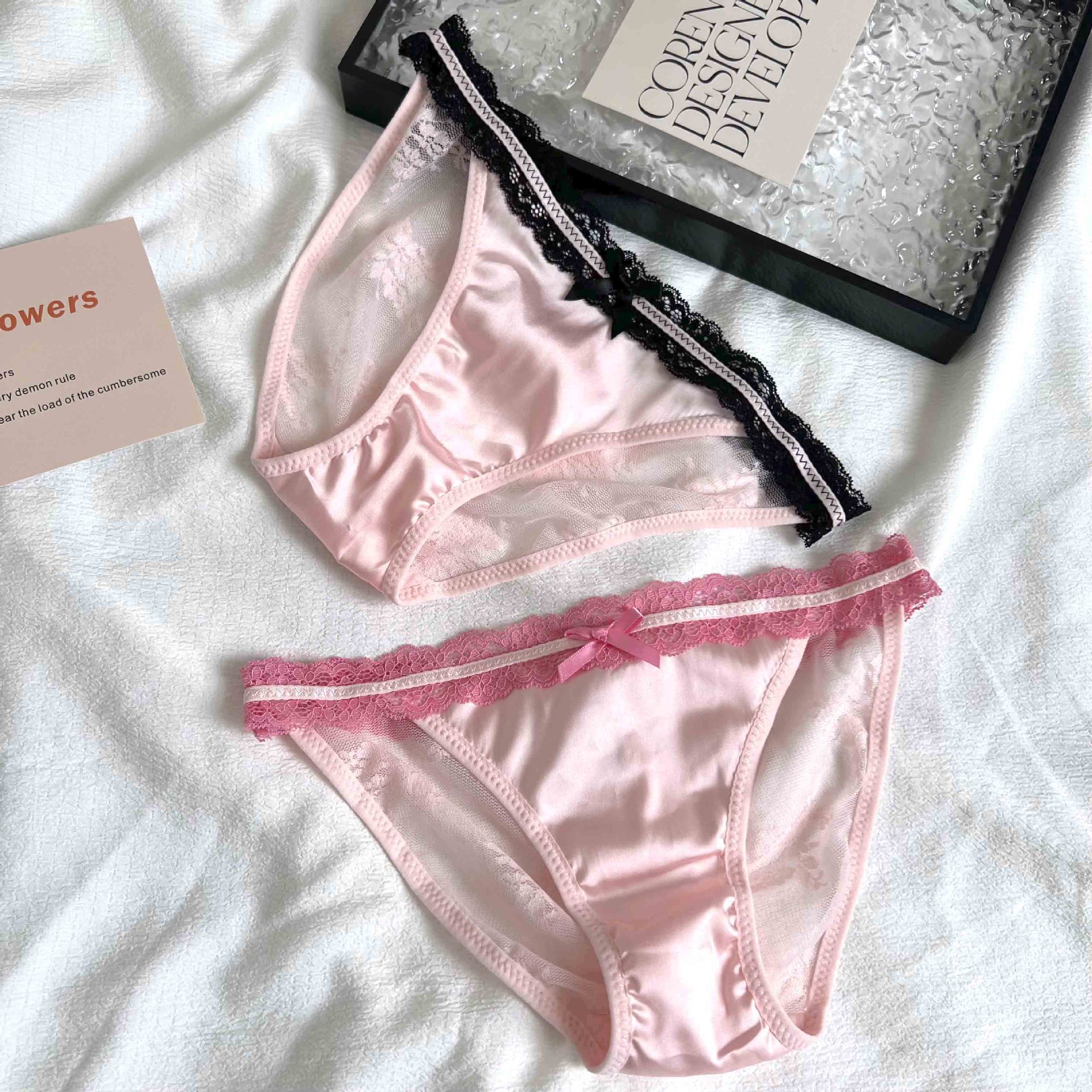 Mu Ruo Qingfeng 프랑스 스파이스 소녀 새틴 낮은 허리 레이스 활 순수한 욕망 속옷 여성용 브리프 코튼 크로트 유혹