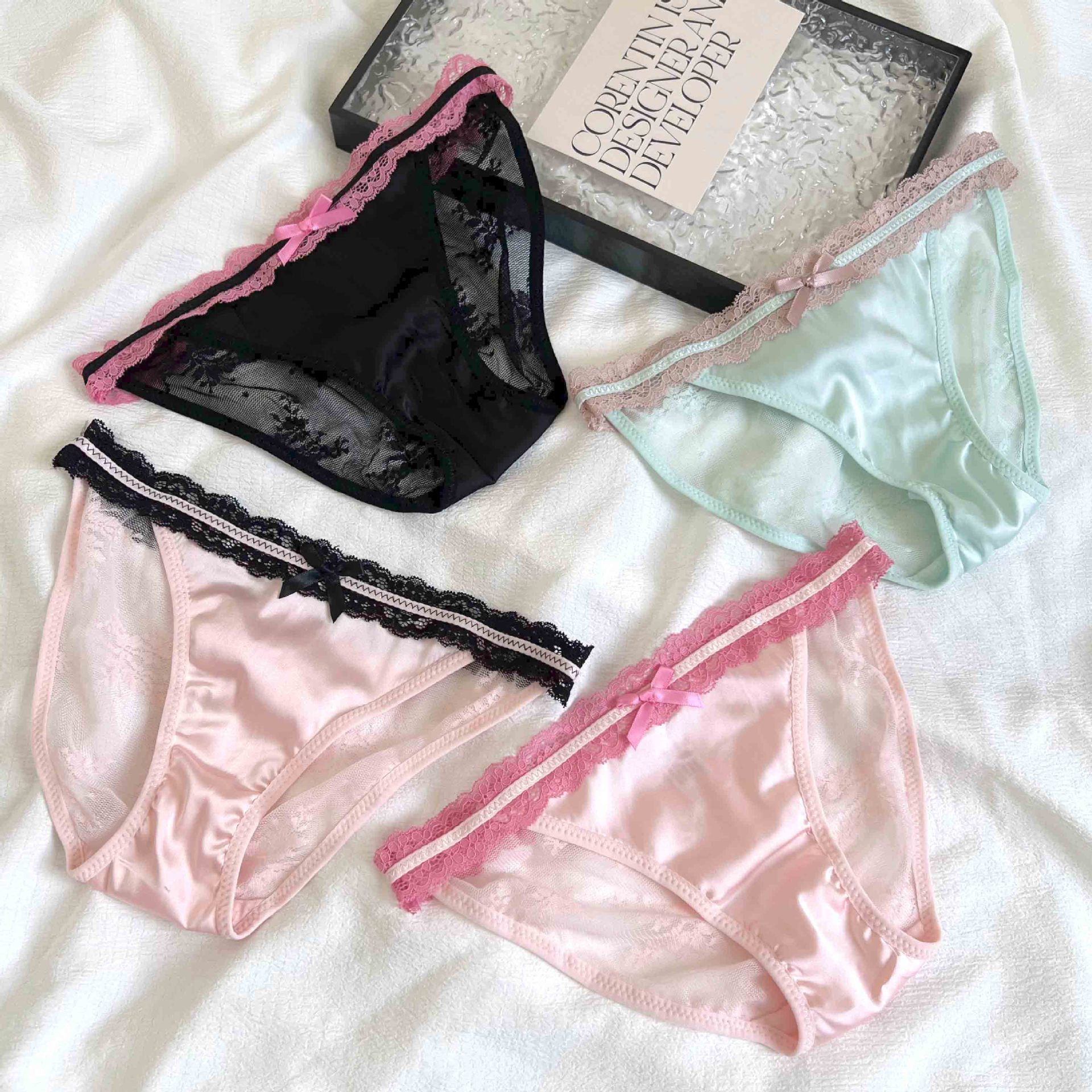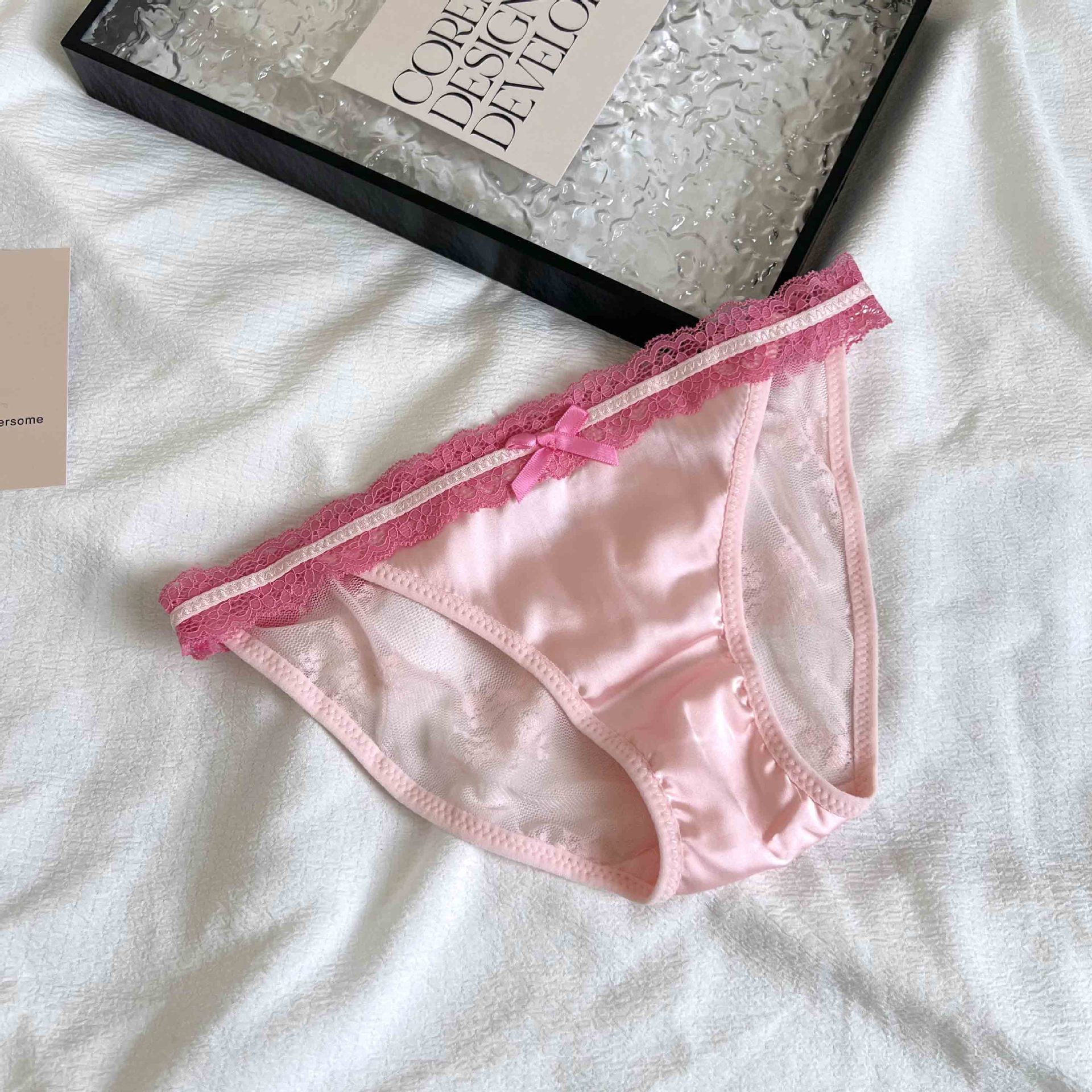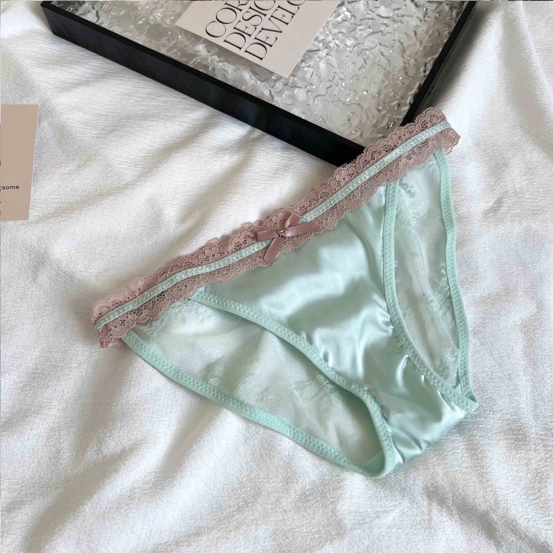 Mu Ruo Qingfeng 프랑스 스파이스 소녀 새틴 낮은 허리 레이스 활 순수한 욕망 속옷 여성용 브리프 코튼 크로트 유혹스토어 가기