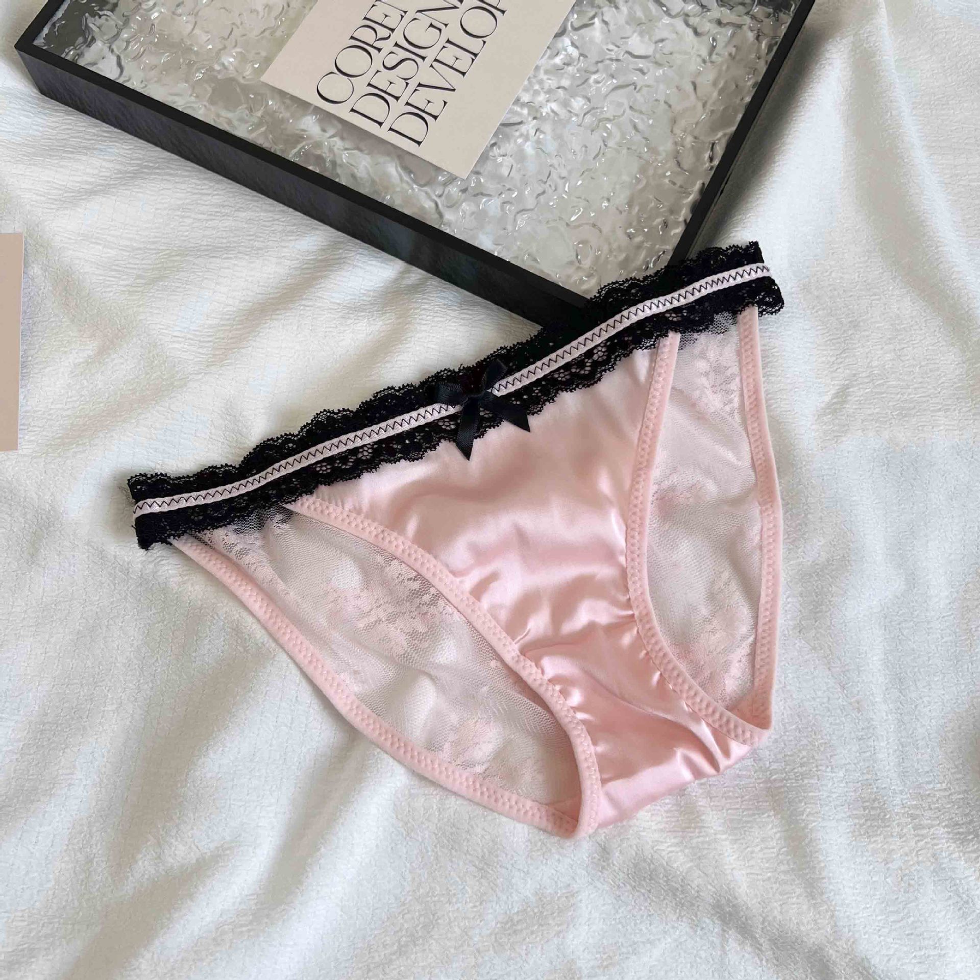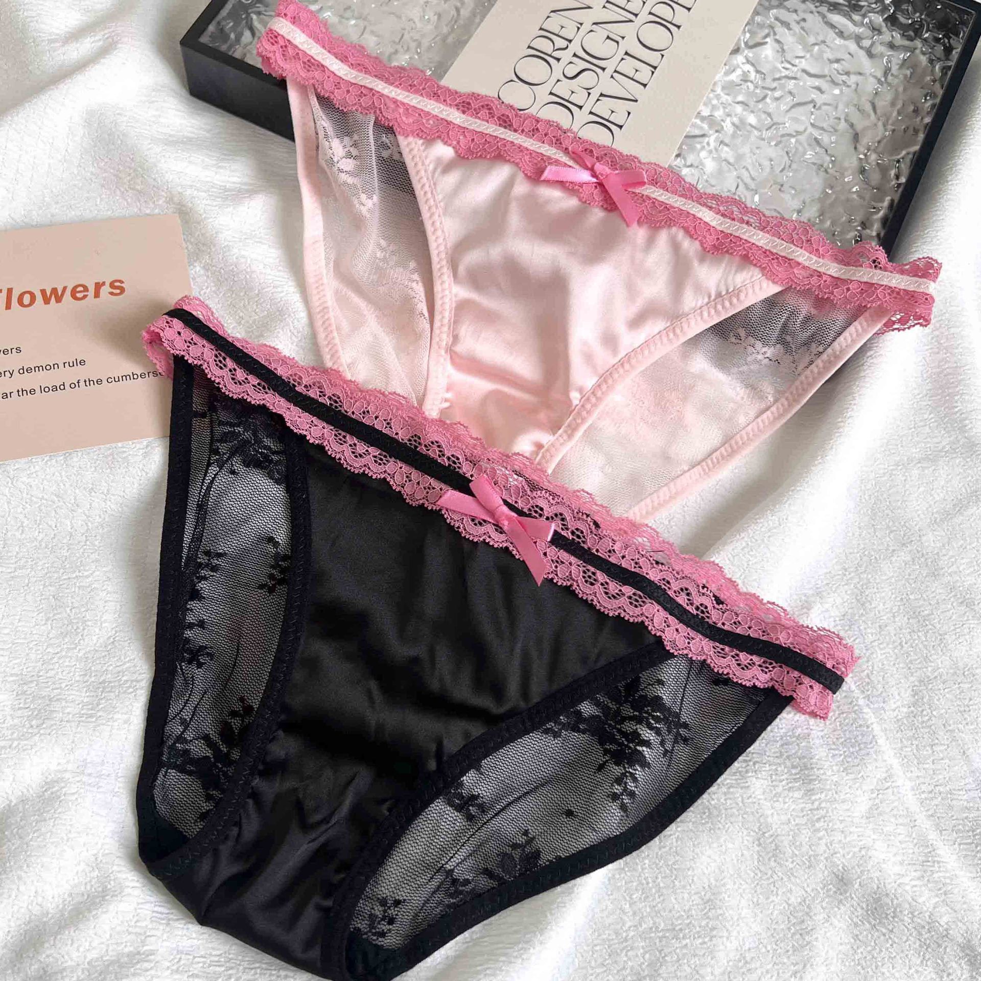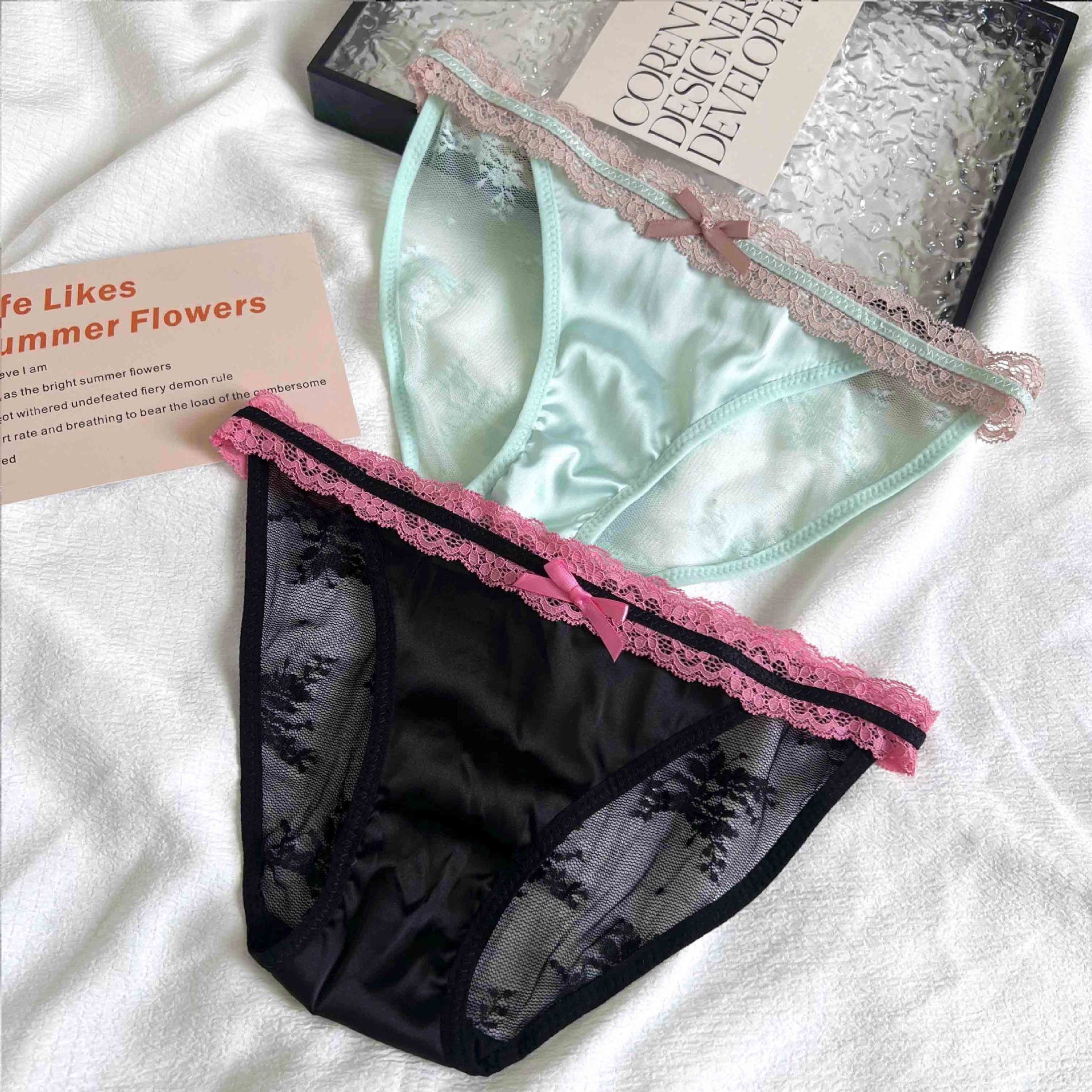 Mu Ruo Qingfeng 프랑스 스파이스 소녀 새틴 낮은 허리 레이스 활 순수한 욕망 속옷 여성용 브리프 코튼 크로트 유혹스토어 가기