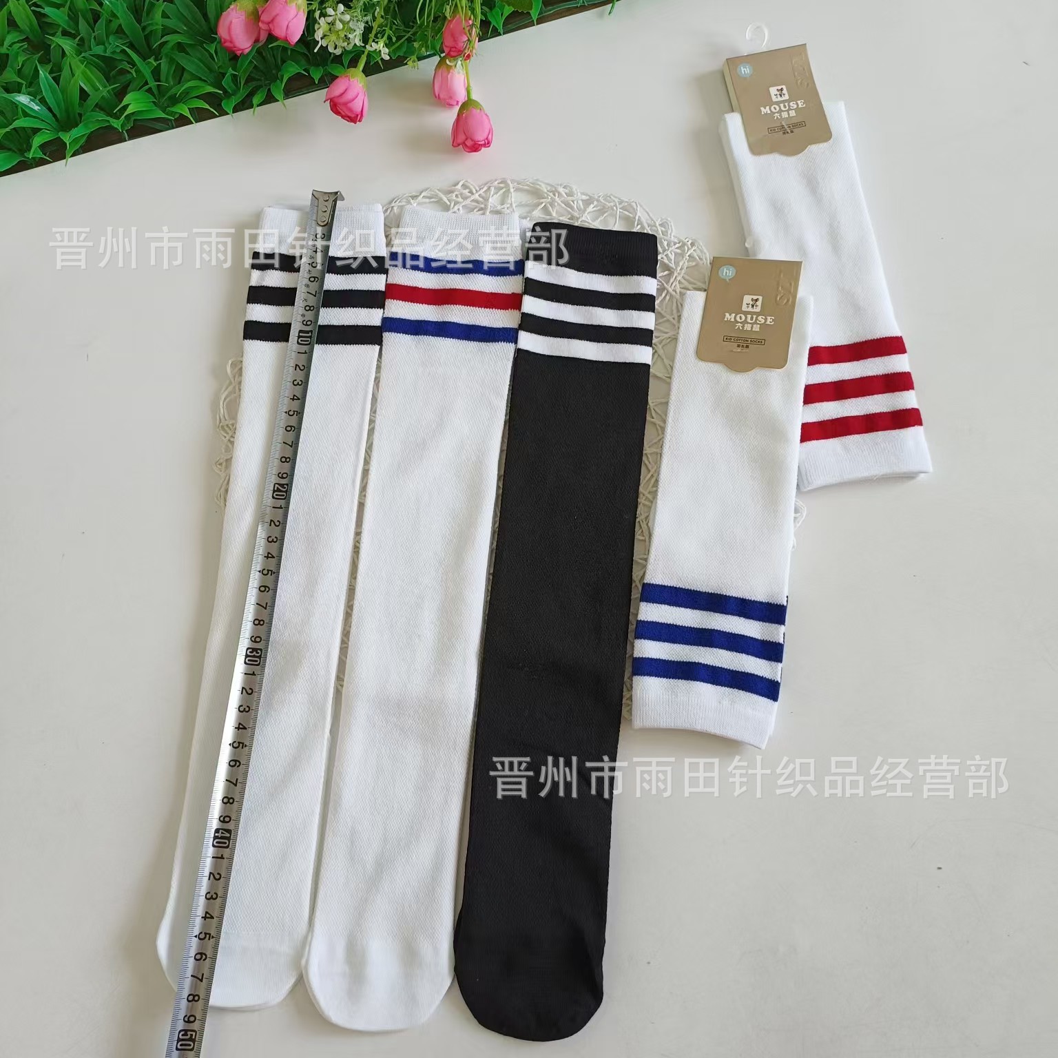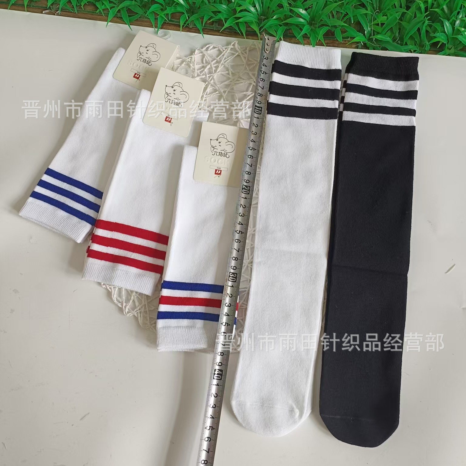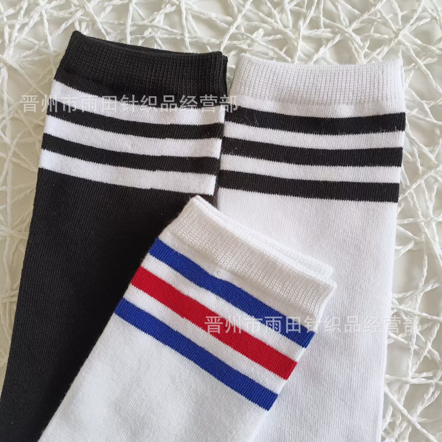 • 흰색 양말 파란색과 빨간색 줄무늬