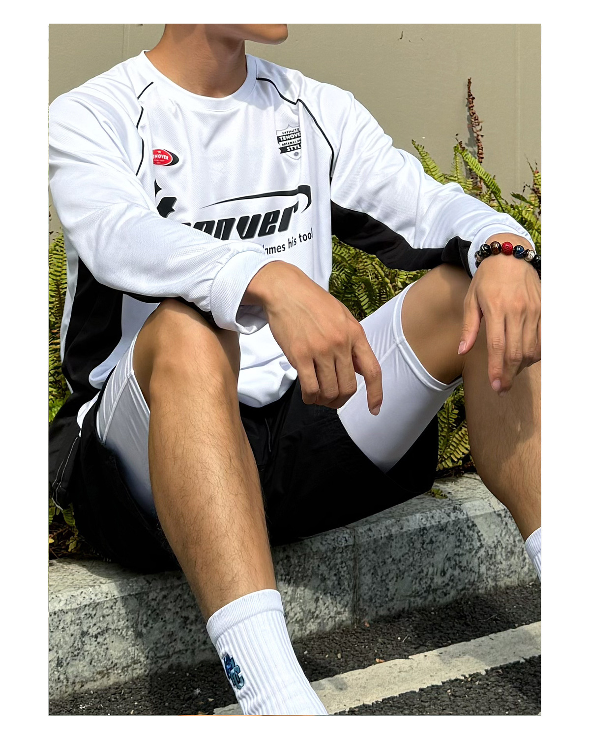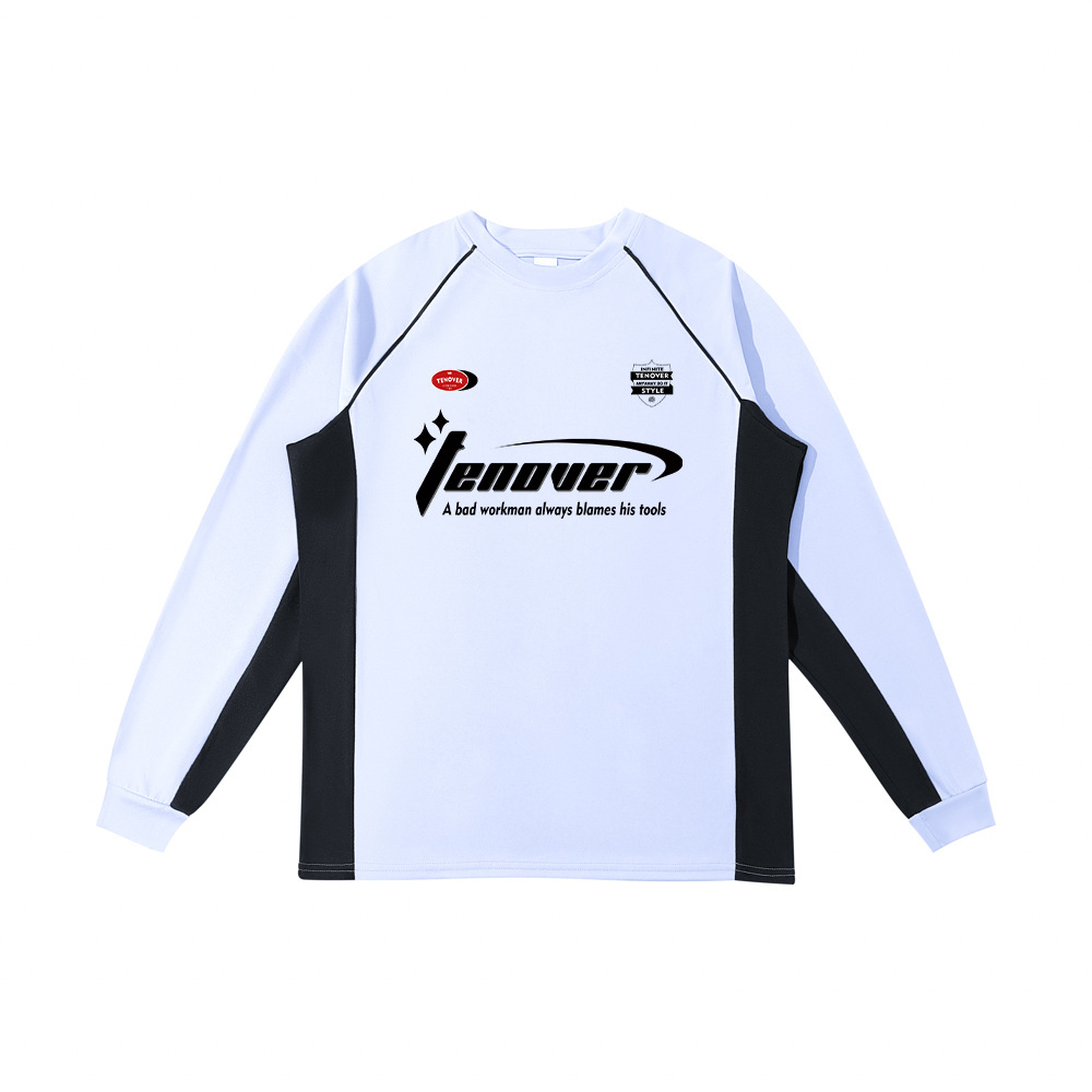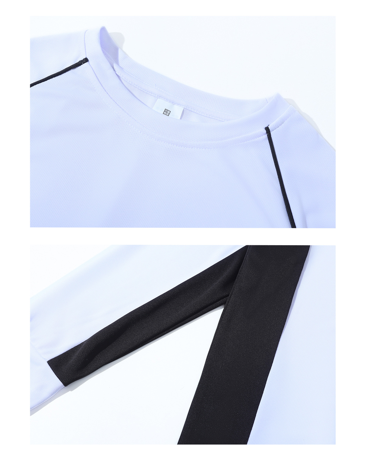 테노버 아메리칸 스타일 스티칭 대조 라글란 소매 긴 소매 훈련 세트 티셔츠 피트니스 달리기 스포츠 학생 가을 겨울