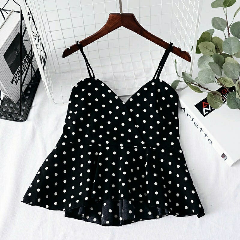 새로운 웨이브 닷 카미 솔 여성의 여름 아우터 착용 섹시한 민소매 탑 숄더베이스 셔츠 느슨한 쉬폰 셔츠스토어 가기