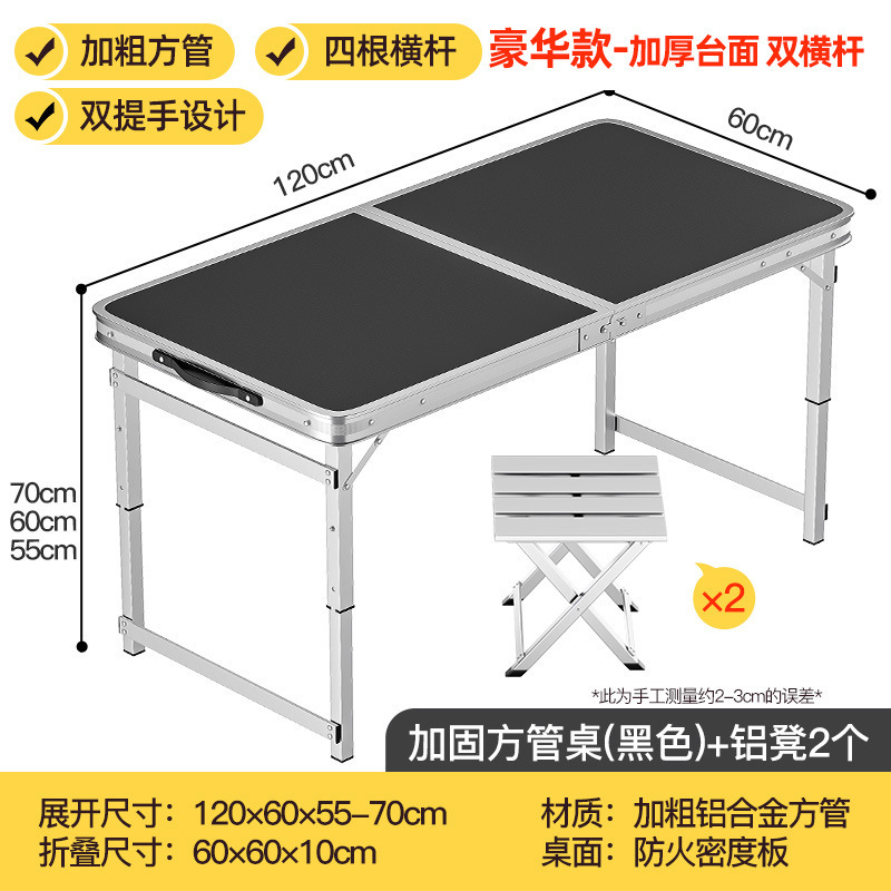 • [두꺼운 테이블 가장자리⭐더블 크로스바] 120cm 블랙 + 알루미늄 스툴 2개