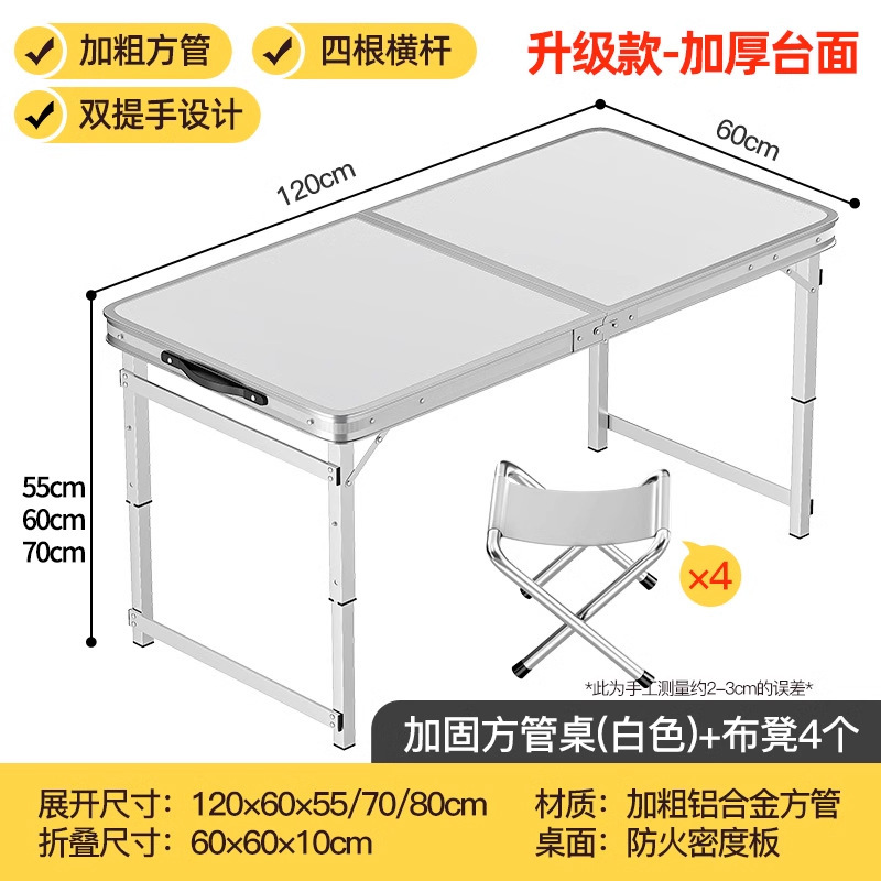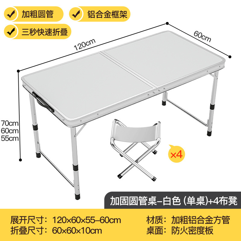• [두꺼운 테이블 가장자리⭐더블 크로스바] 120cm 웜화이트 + 알루미늄 스툴 4개