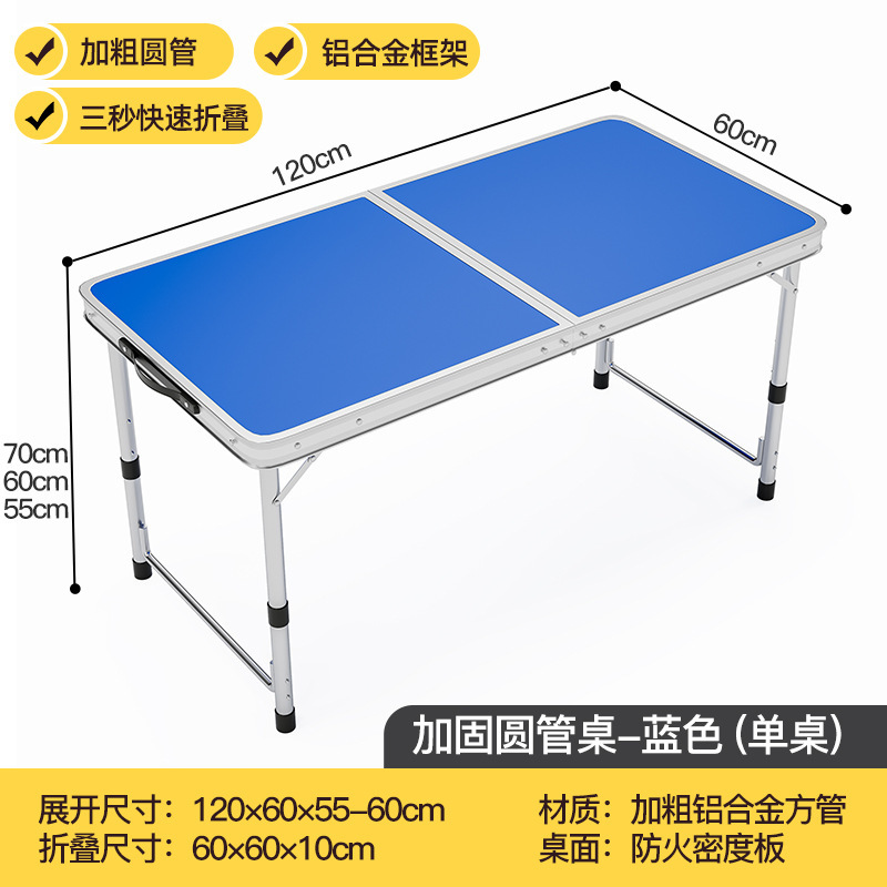 • [두꺼운 테이블 가장자리⭐더블 크로스바] 120cm 블루 + 알루미늄 스툴 2개