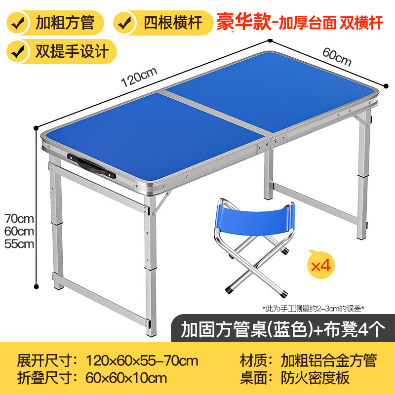 • [두꺼운 테이블 가장자리⭐더블 크로스바] 120cm 블루 + 알루미늄 스툴 4개