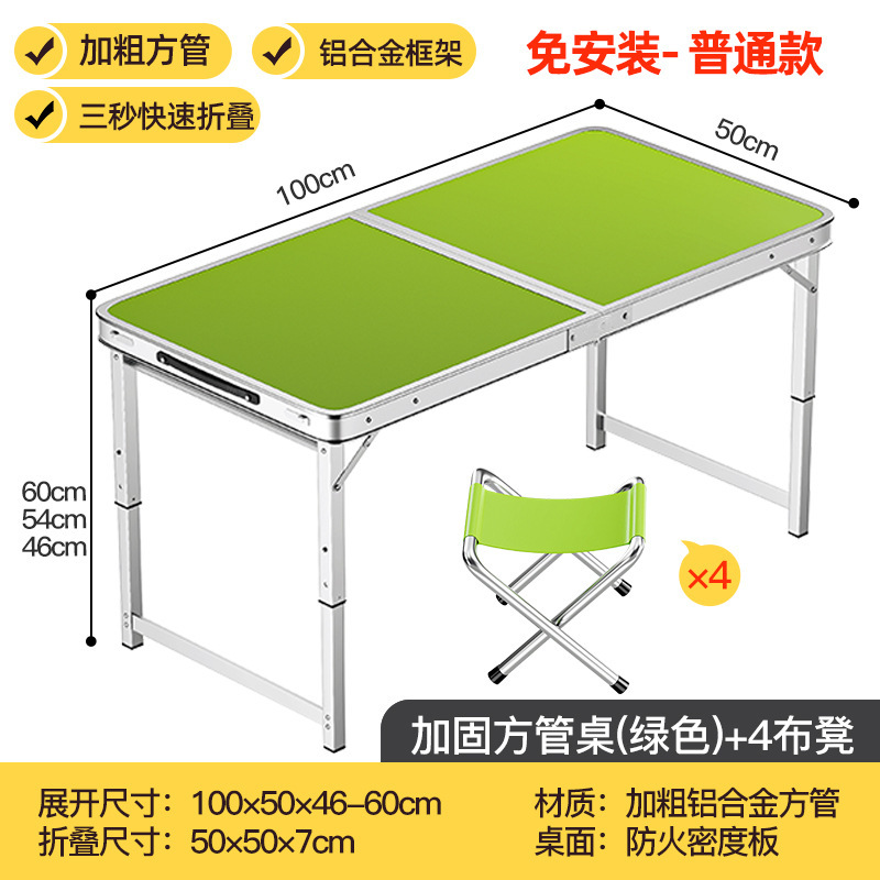 • [두꺼운 테이블 가장자리⭐더블 크로스바] 120cm 그린 + 알루미늄 스툴 4개