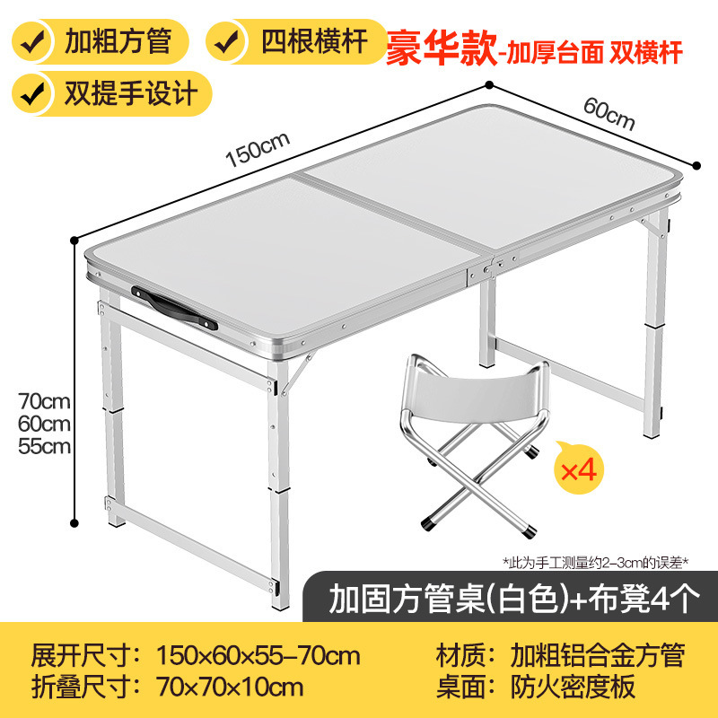 • [두꺼운 테이블 가장자리⭐더블 크로스바] 150cm 웜화이트 + 알루미늄 스툴 4개