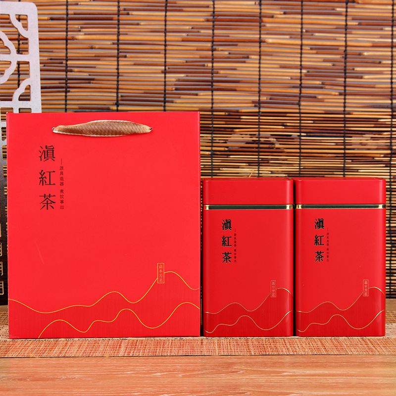 • Jiamu Fangming 빨간색 Dian 홍차 내부 가방이 있는 빈 캔