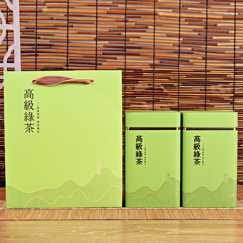 • 녹색 고급 녹차 빈 캔, 찻잎 없음