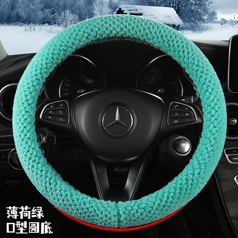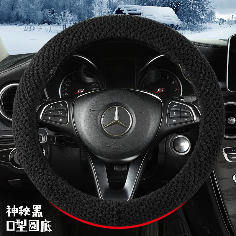 슈퍼 느낌 자동차 스티어링 휠 커버 겨울 짧은 플러시 따뜻한 자동차 핸들 커버 유니섹스 미끄럼 방지 땀 흡수