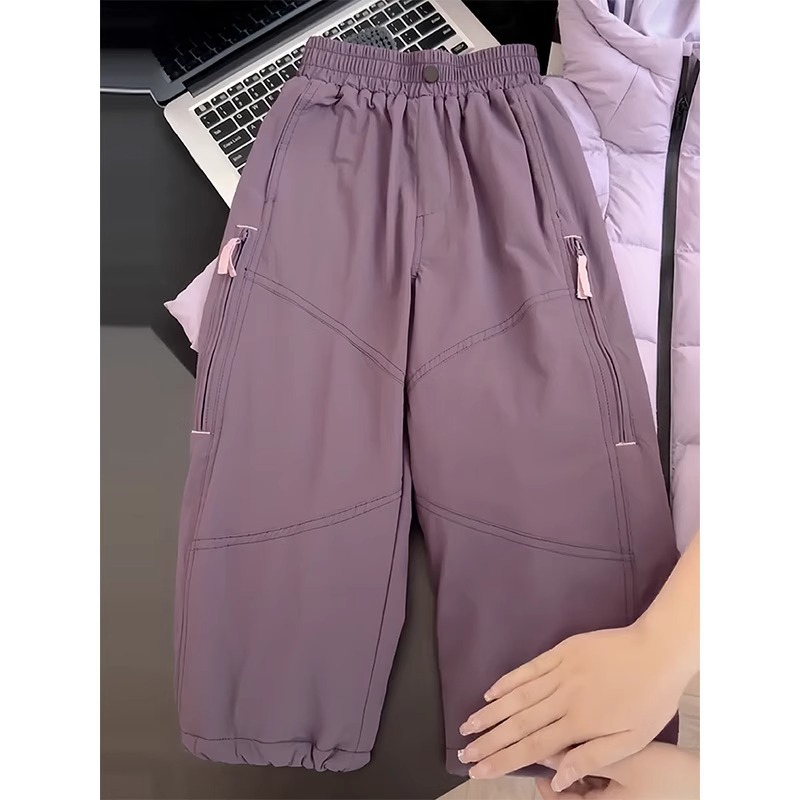 여자 충전 바지 기모 가을과 겨울 따뜻한 어린이 3 방암 먼지 방지 두꺼운 서양식 외부 착용 중학생 캐주얼 바지