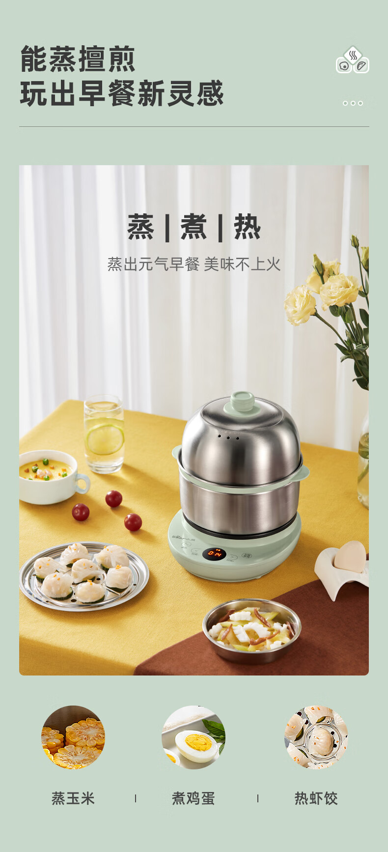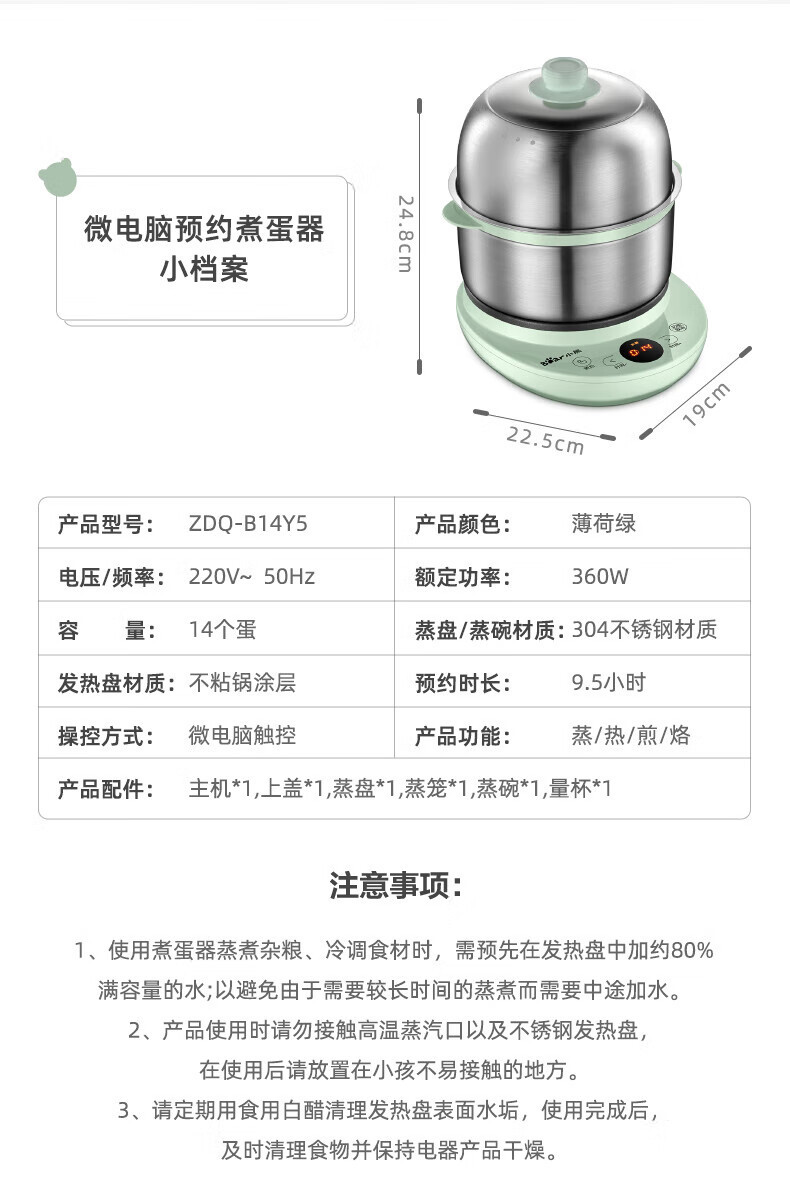 곰 (곰) 타이밍 계란 보일러 전기 기선 스테인레스 스틸 다기능 더블 레이어 오믈렛 ZDQ-B14Y5스토어 가기