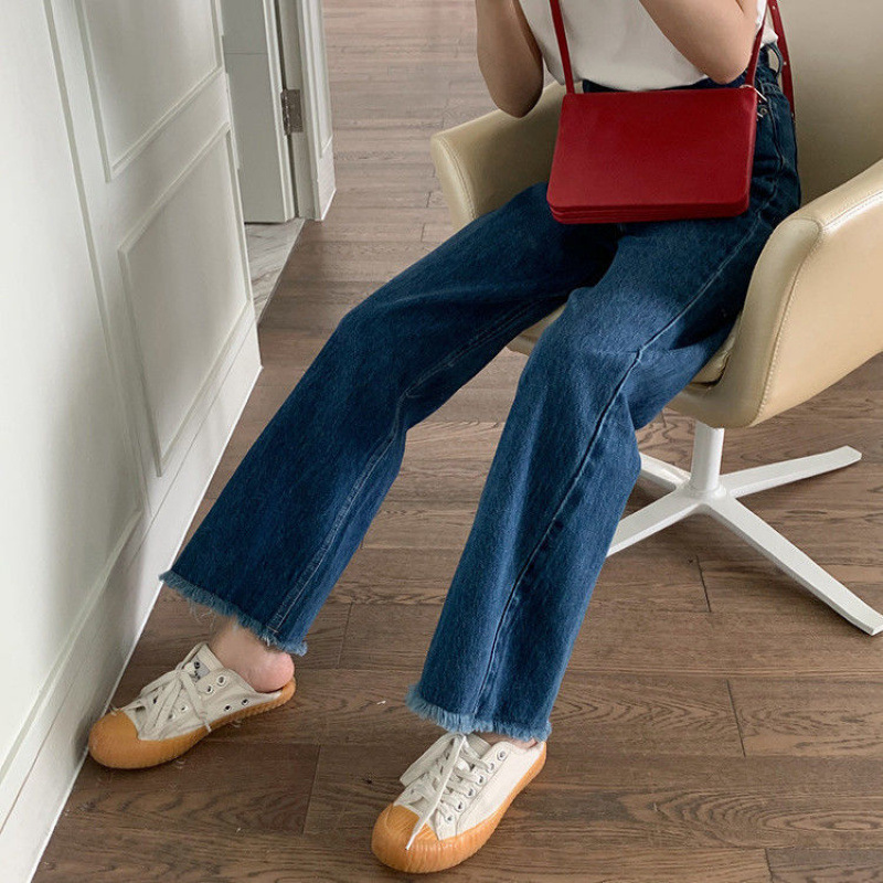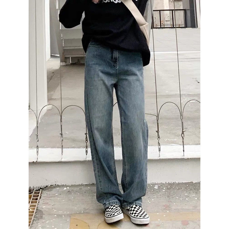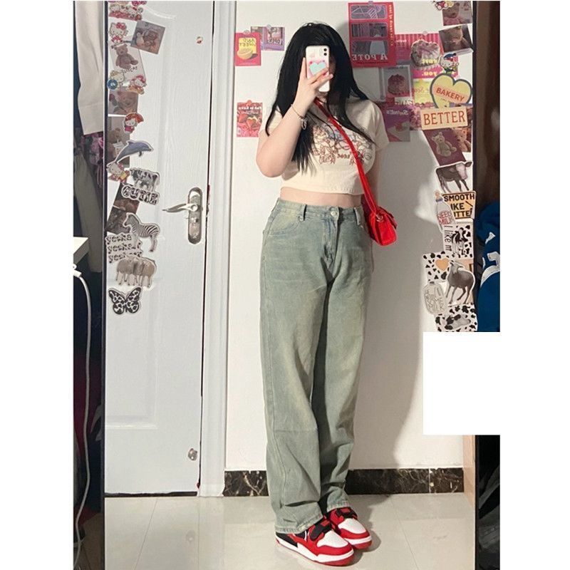 대형 통통녀 청바지 여성용 하이 웨이스트 배 모양의 피겨 힙합 커버 슬리밍 스트레이트 팬츠 루즈 와이드 레그 팬츠