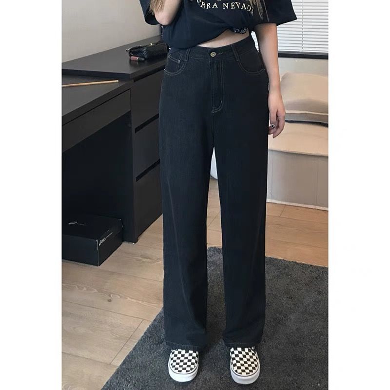 대형 통통녀 청바지 여성용 하이 웨이스트 배 모양의 피겨 힙합 커버 슬리밍 스트레이트 팬츠 루즈 와이드 레그 팬츠스토어 가기