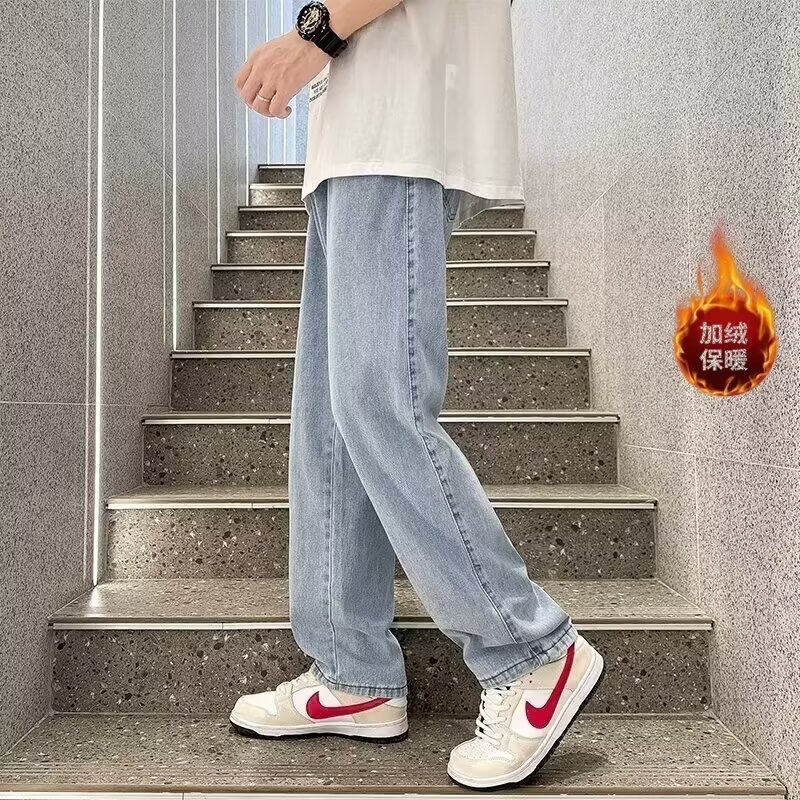 공장 직접 봄과 가을 청바지 남성용 스트레이트 튜브 느슨한 기모 두꺼운 따뜻한 비즈니스 탄성 캐주얼 바지스토어 가기