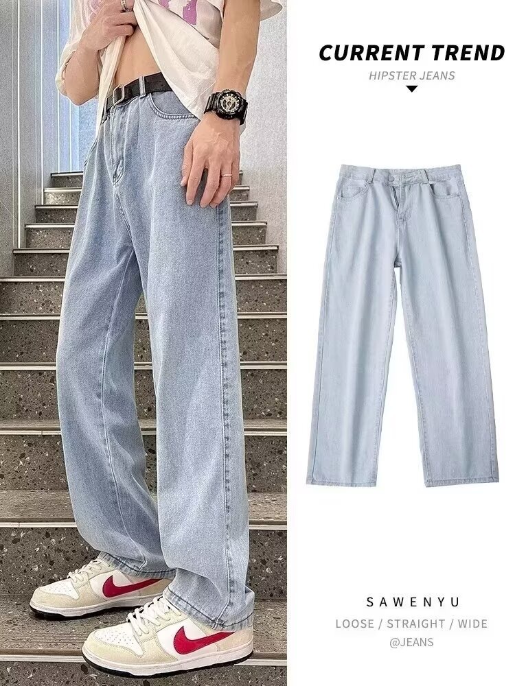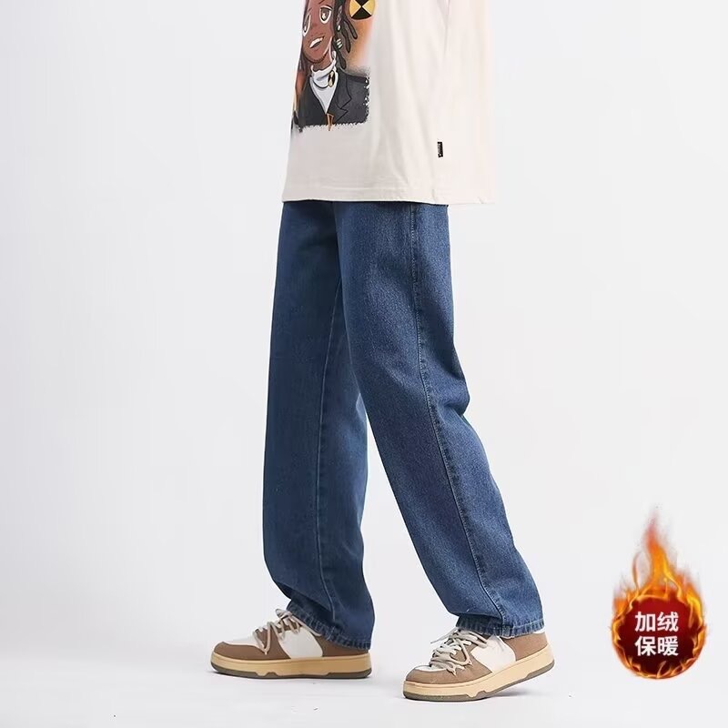 공장 직접 봄과 가을 청바지 남성용 스트레이트 튜브 느슨한 기모 두꺼운 따뜻한 비즈니스 탄성 캐주얼 바지
