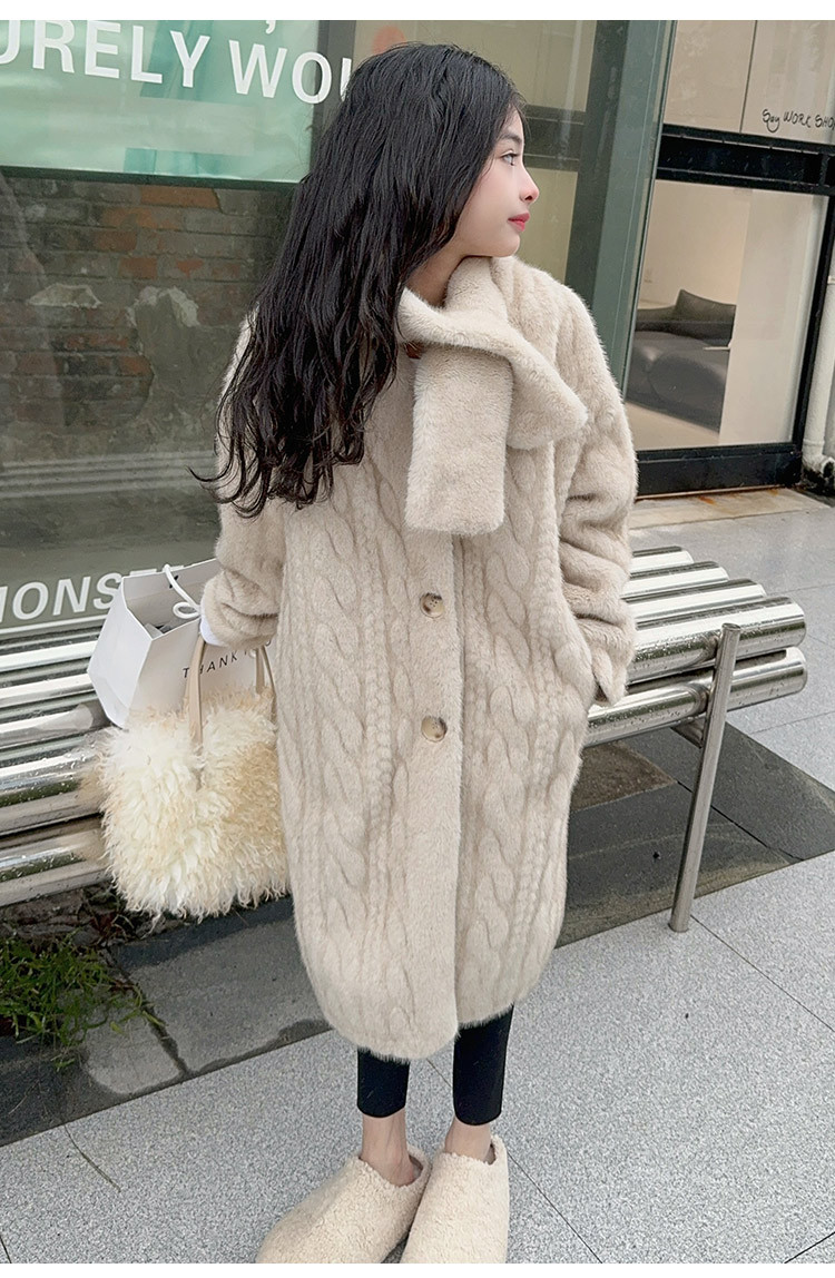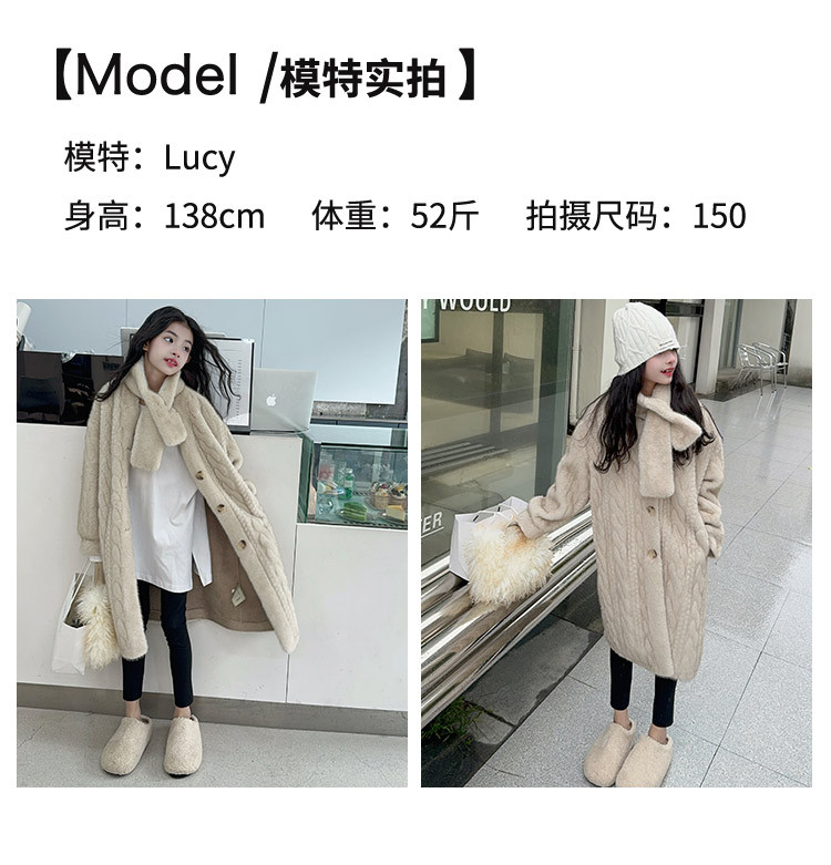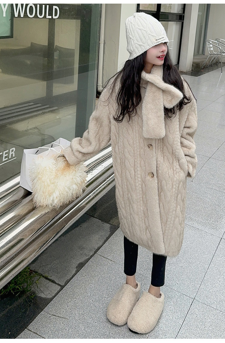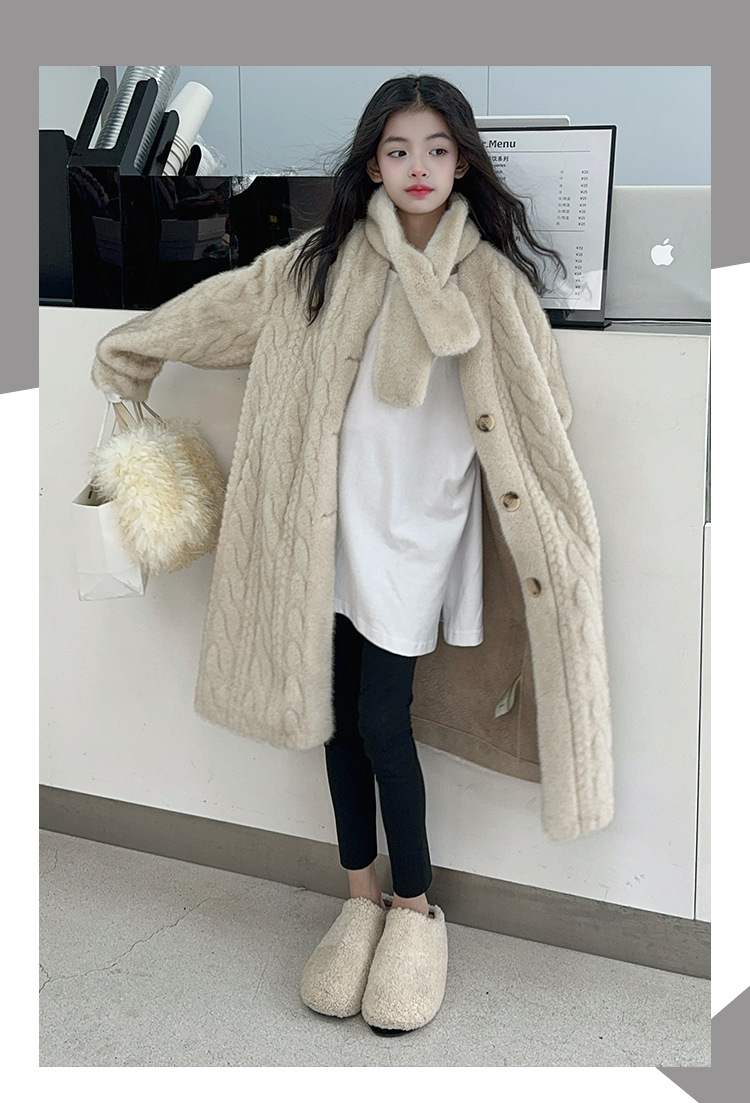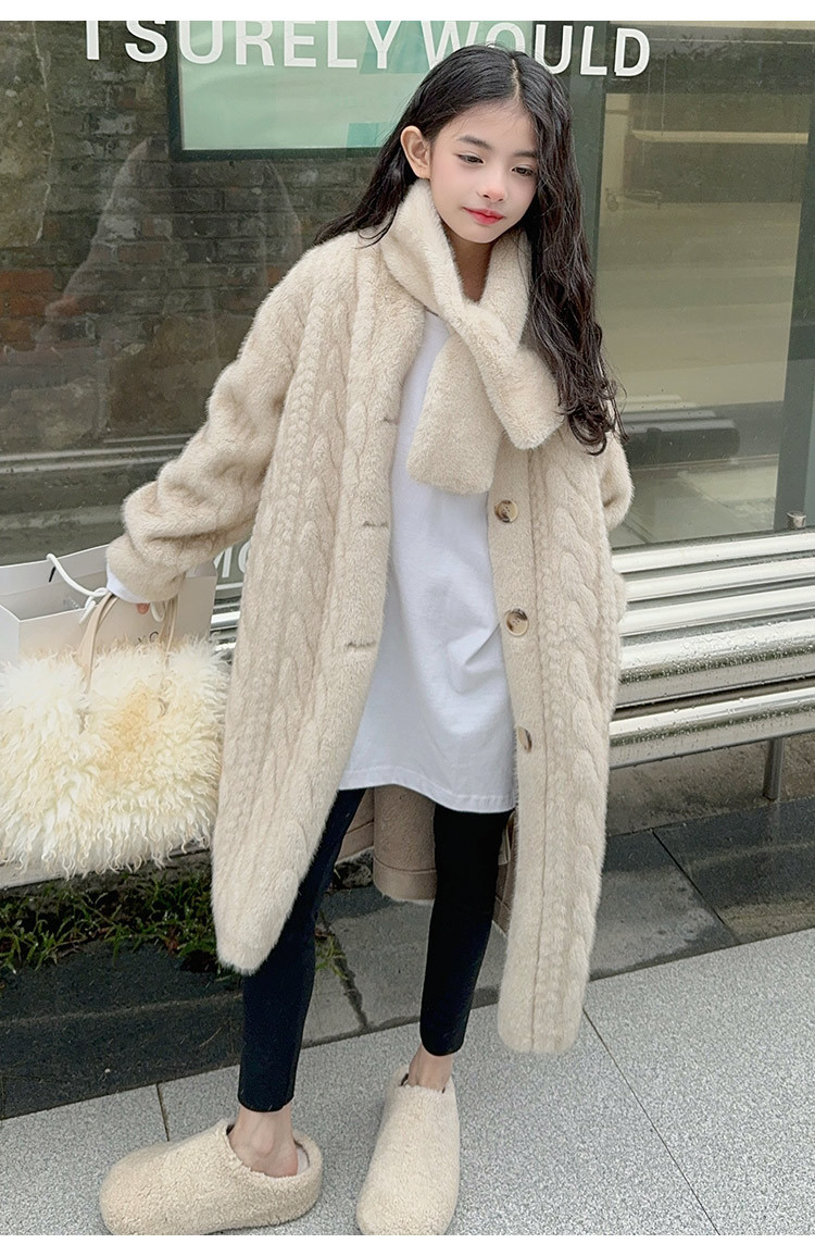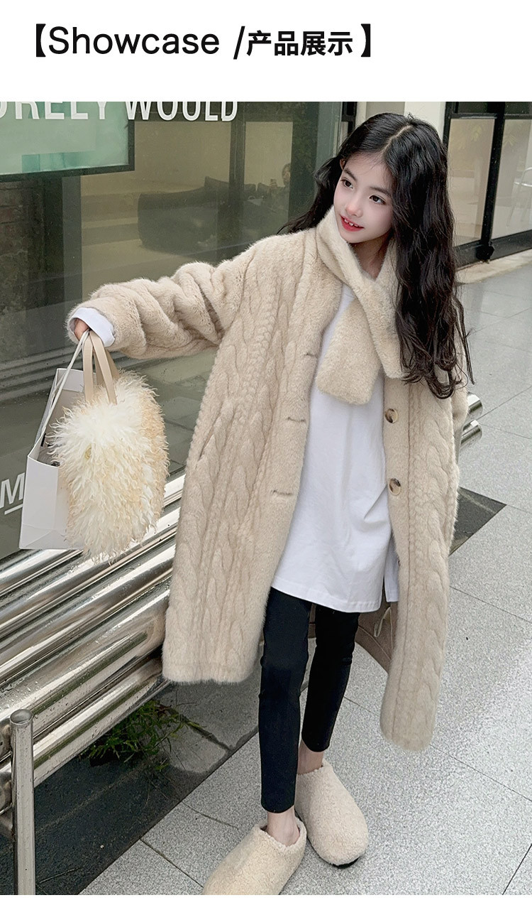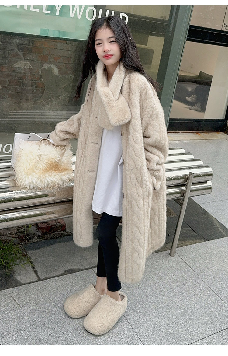 소녀 모피 코트 겨울 2024 새 소녀의 긴 니트 코트 미드 빅 어린이 두꺼운 겨울 울 스웨터스토어 가기