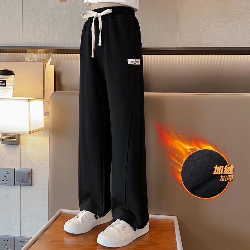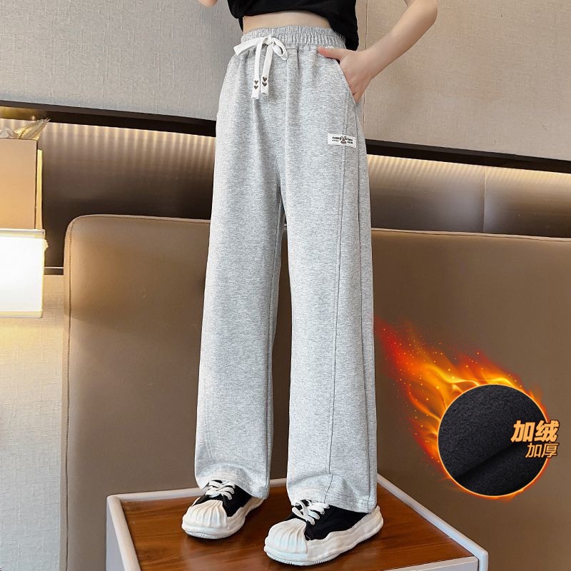 소녀 바지 겨울 2024 새로운 두꺼운 원피스 벨벳 유행 넓은 다리 바지 어린이 유행 기모 캐주얼 바지