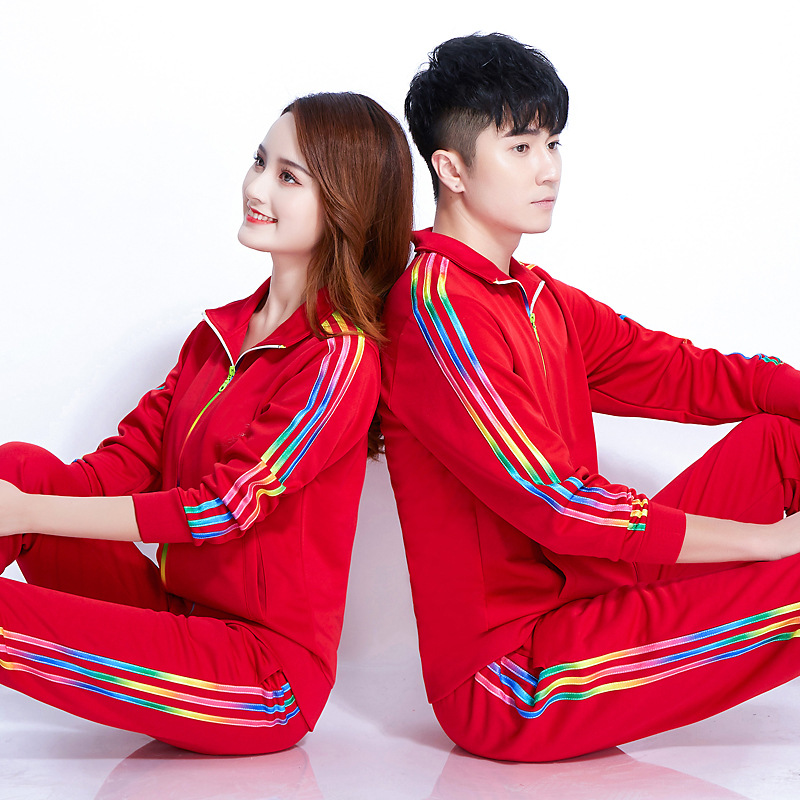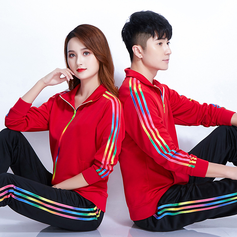 • 레드 셔츠와 블랙 바지, 긴소매 투피스 세트(봄, 가을)