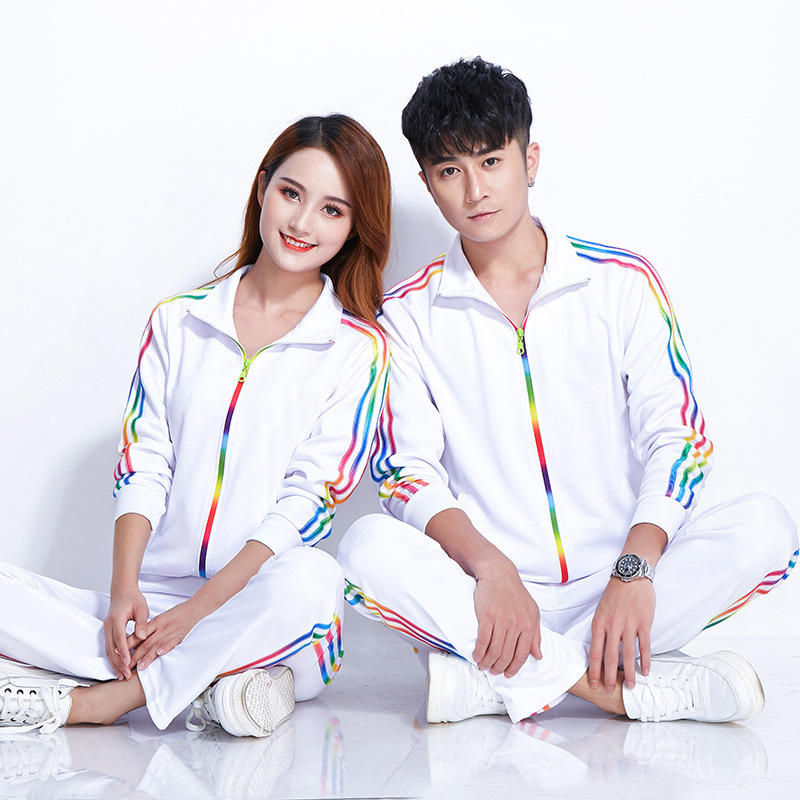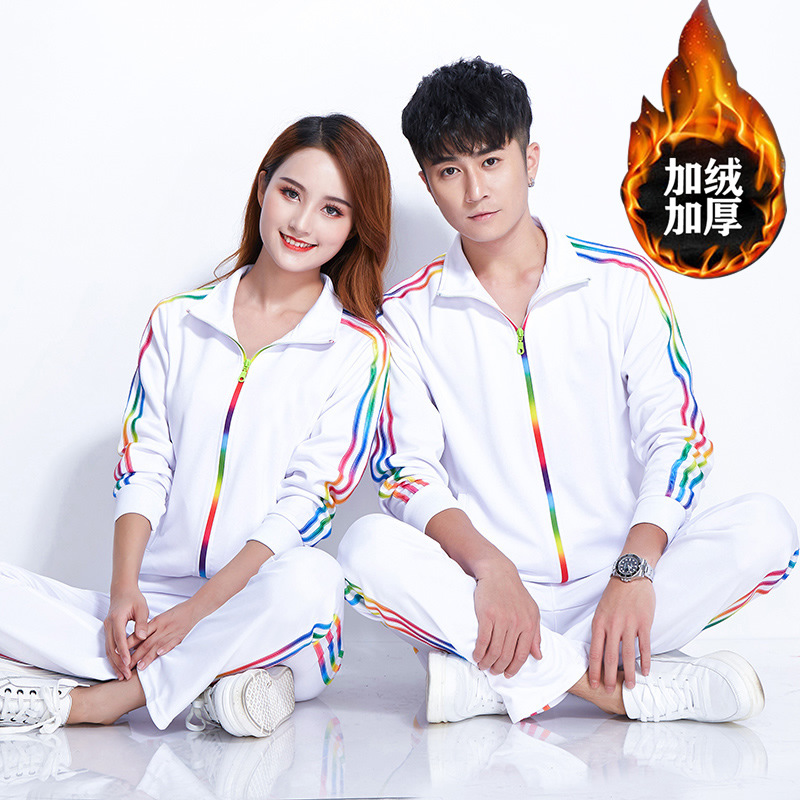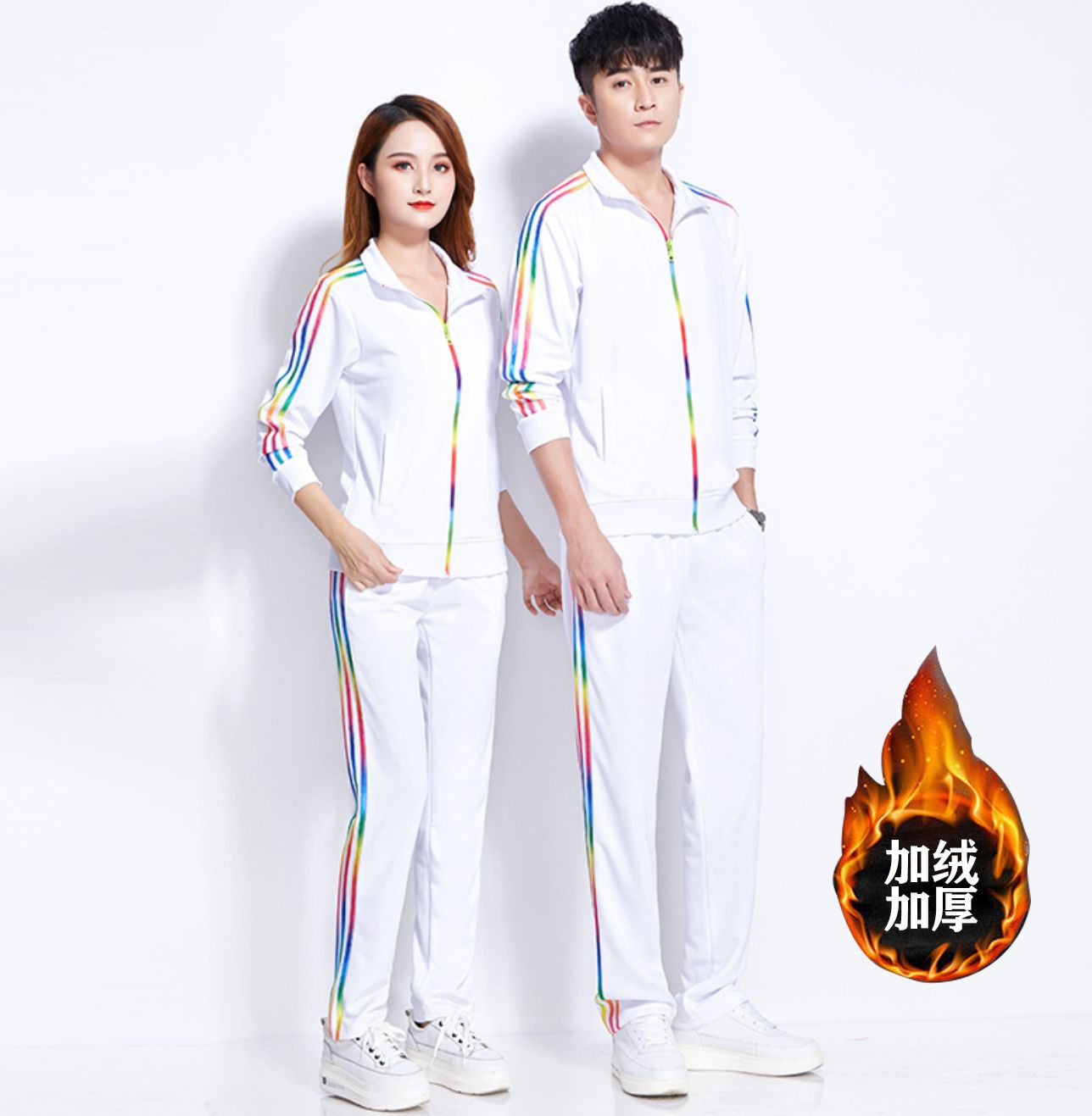 기모 스포츠 세트 남자 가을 겨울 새로운 걷기 달리기 캐주얼 운동복 중간 두께의 여자 투피스 세트 화이트