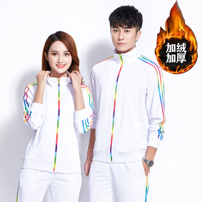 기모 스포츠 세트 남자 가을 겨울 새로운 걷기 달리기 캐주얼 운동복 중간 두께의 여자 투피스 세트 화이트스토어 가기