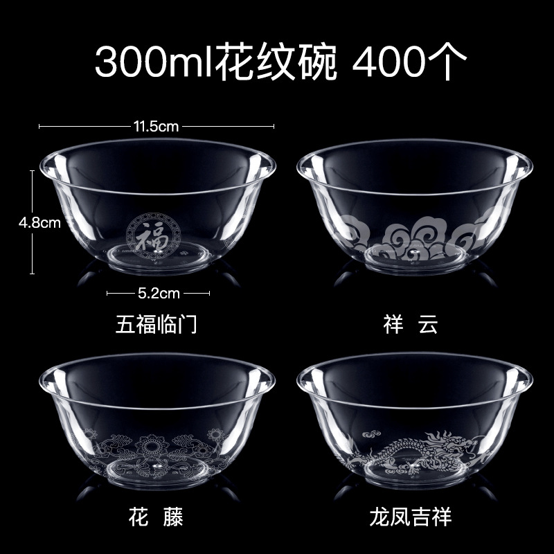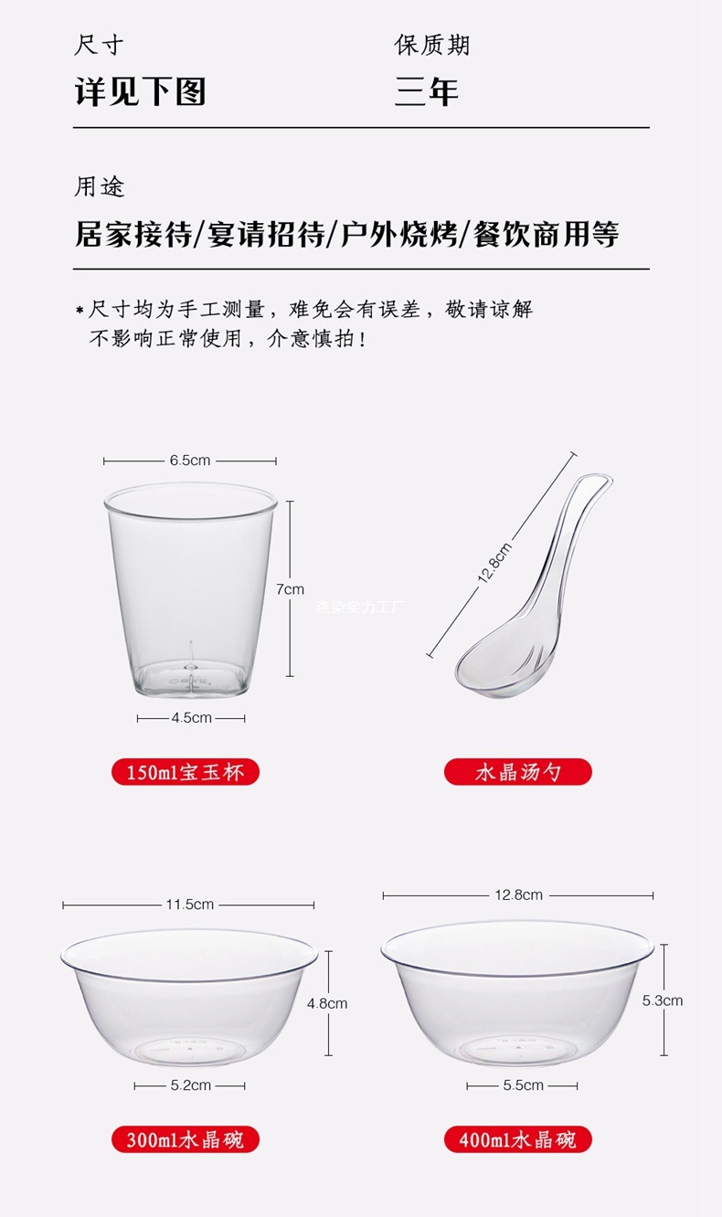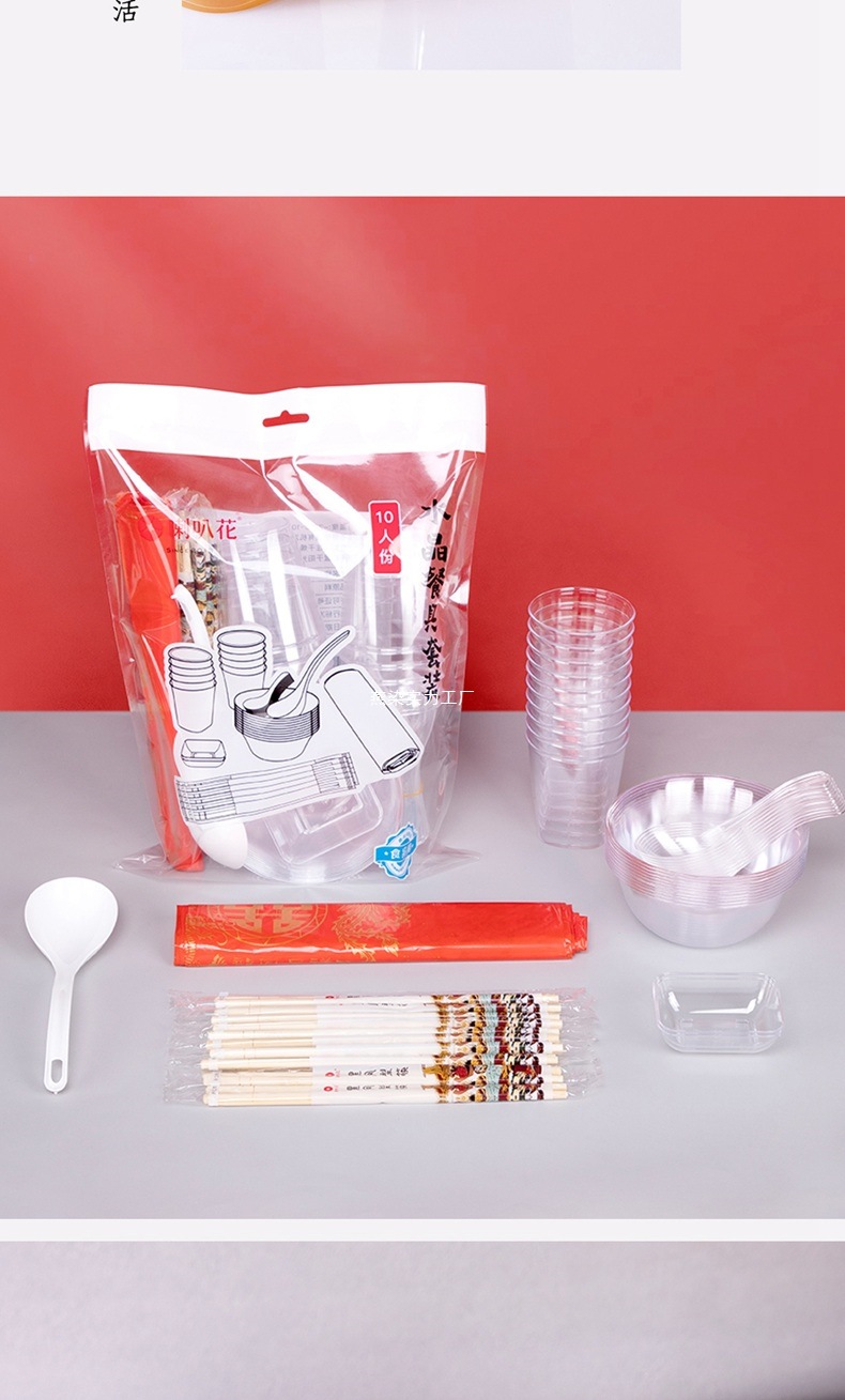 • 300ml 크리스탈 그릇 + 젓가락 + PS 수프 스푼 + 뼈 접시 + Miaoyu 컵 각 100개
